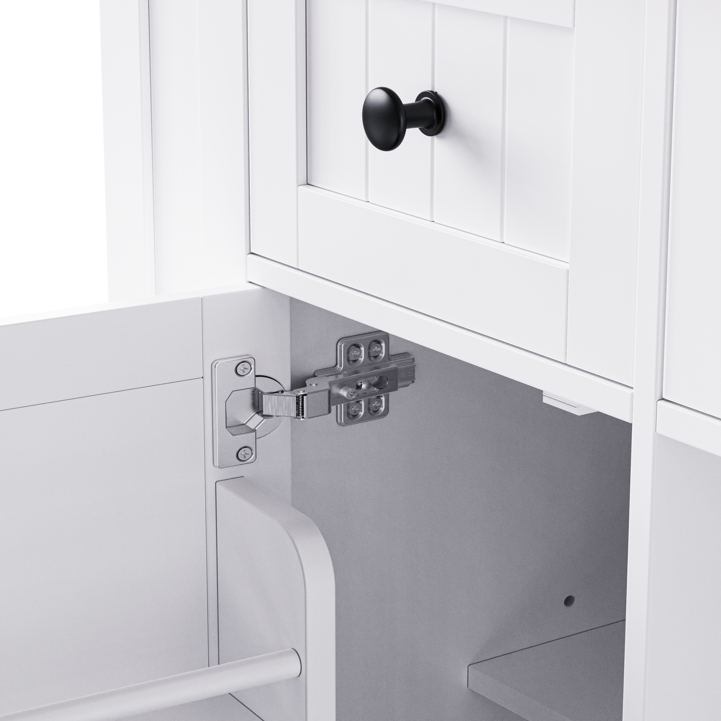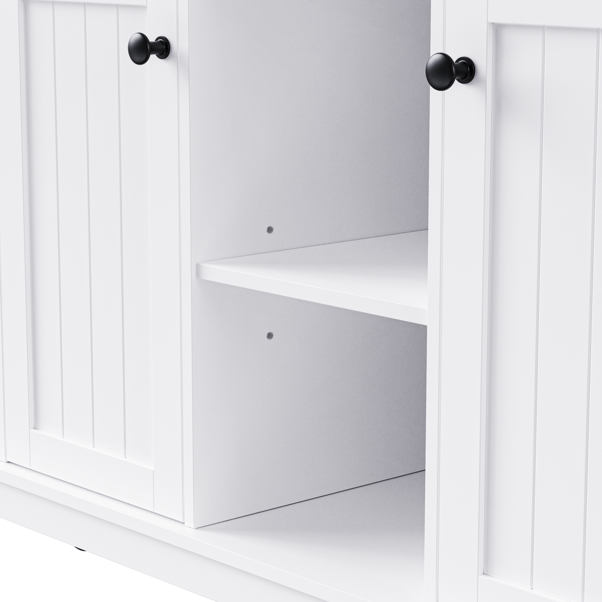 Height-adjustable shelves inside the cabinet doors provide flexibility in accommodating various kitchen items of different sizes.
