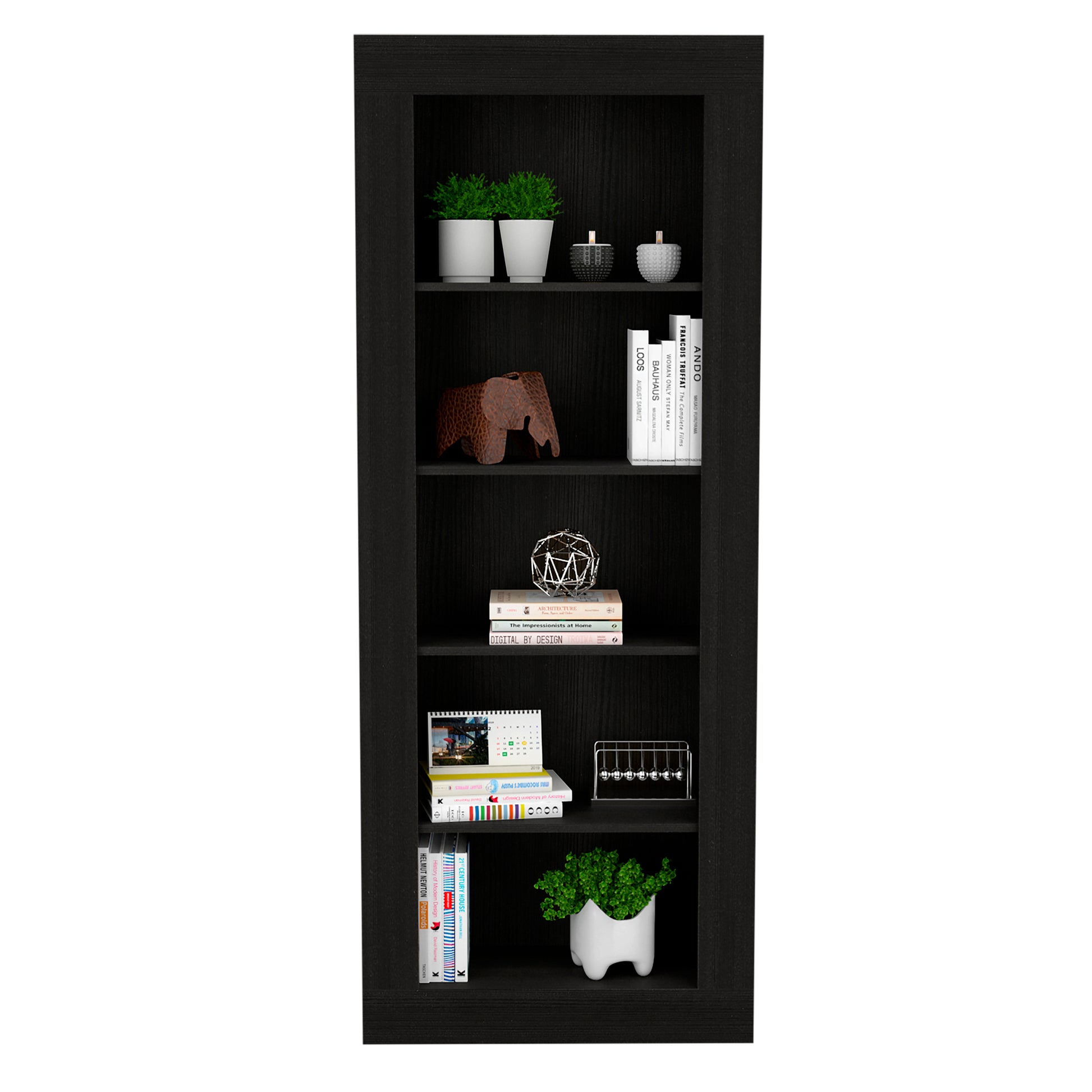 Bookcase with Vertical Design and 5 Storage Shelves, Black