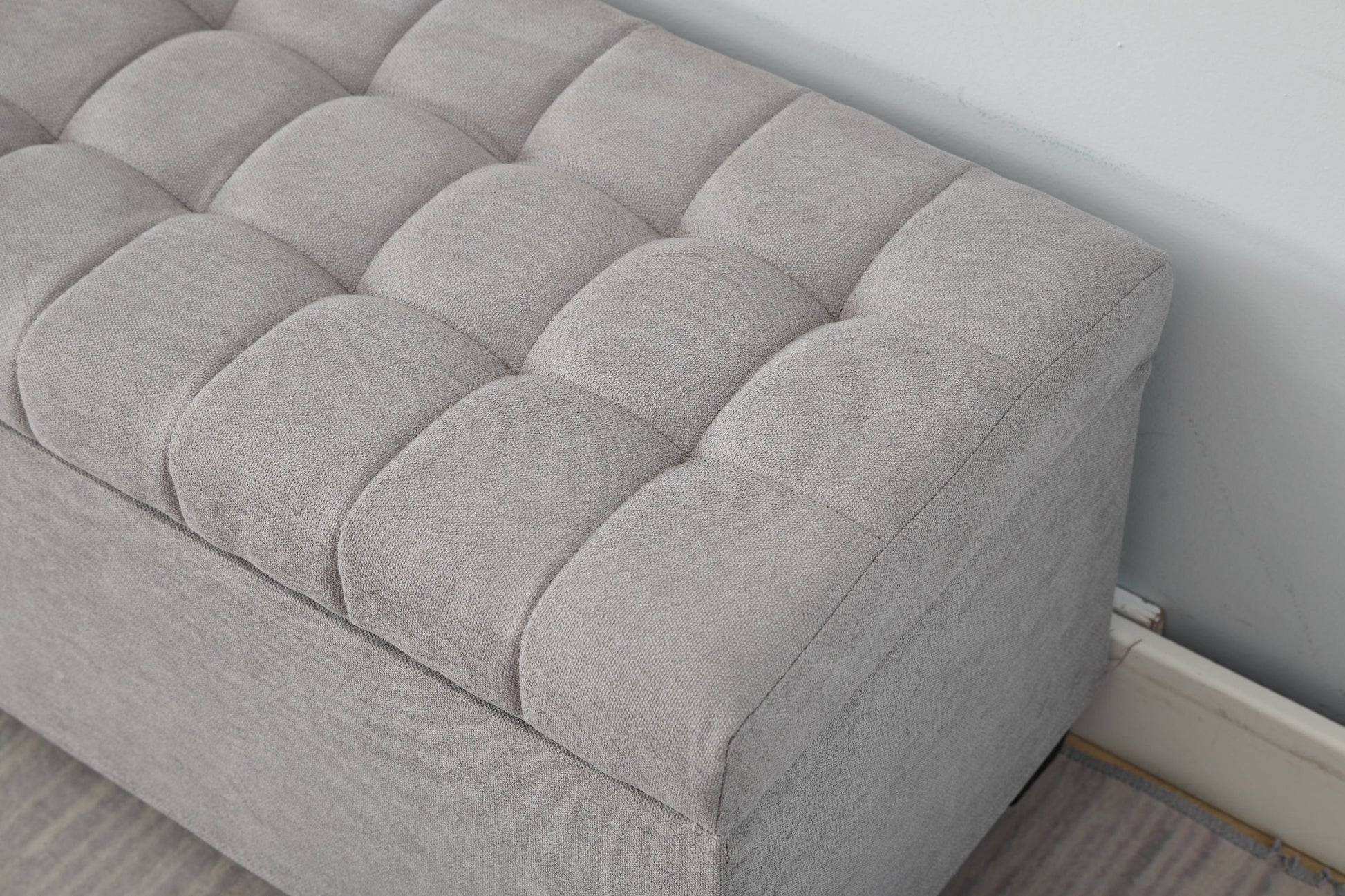 - [Stable, Strong, Sturdy] Crafted with a robust steel frame, quality MDF top, and premium linen-look fabric, this bench with storage boasts long-lasting stability and strength