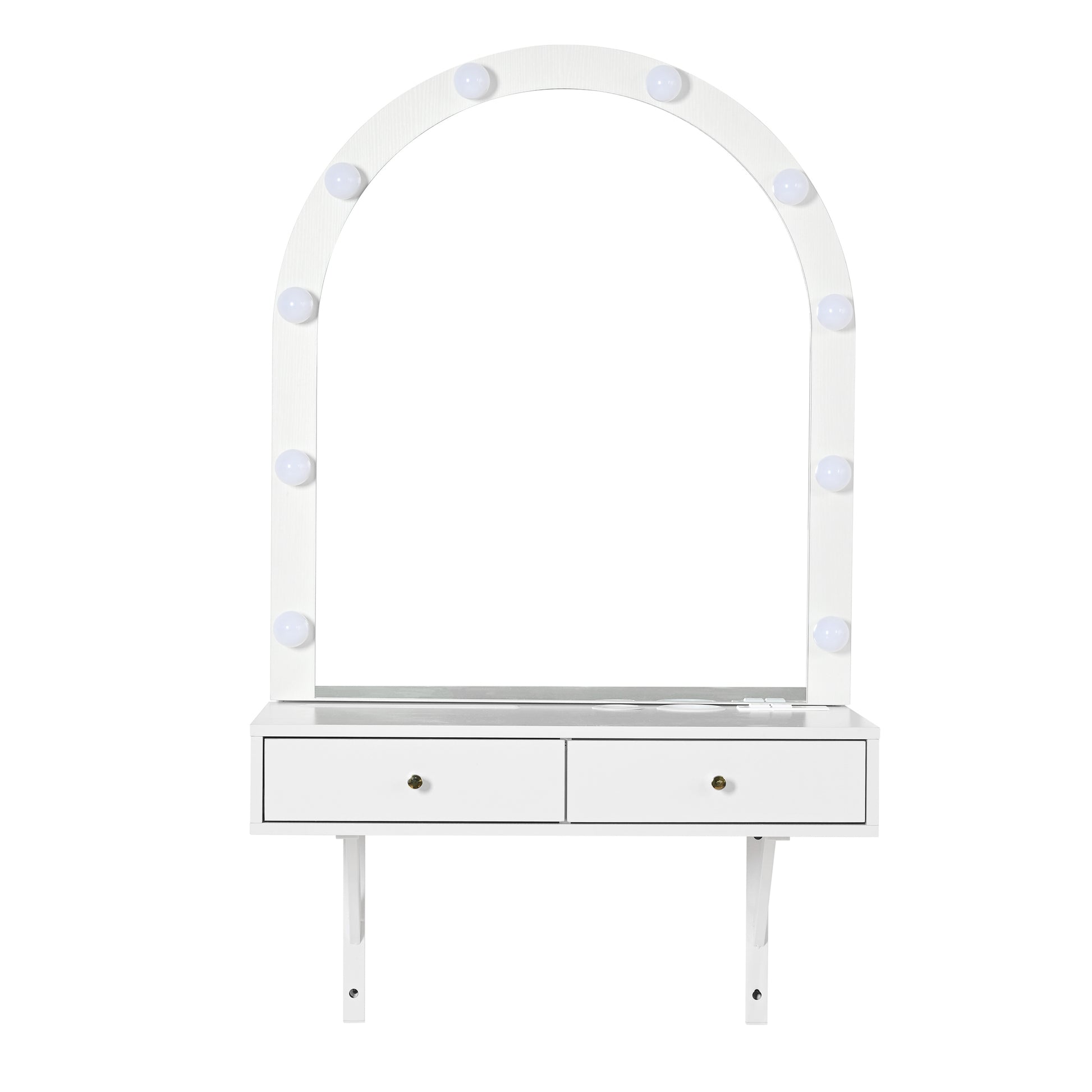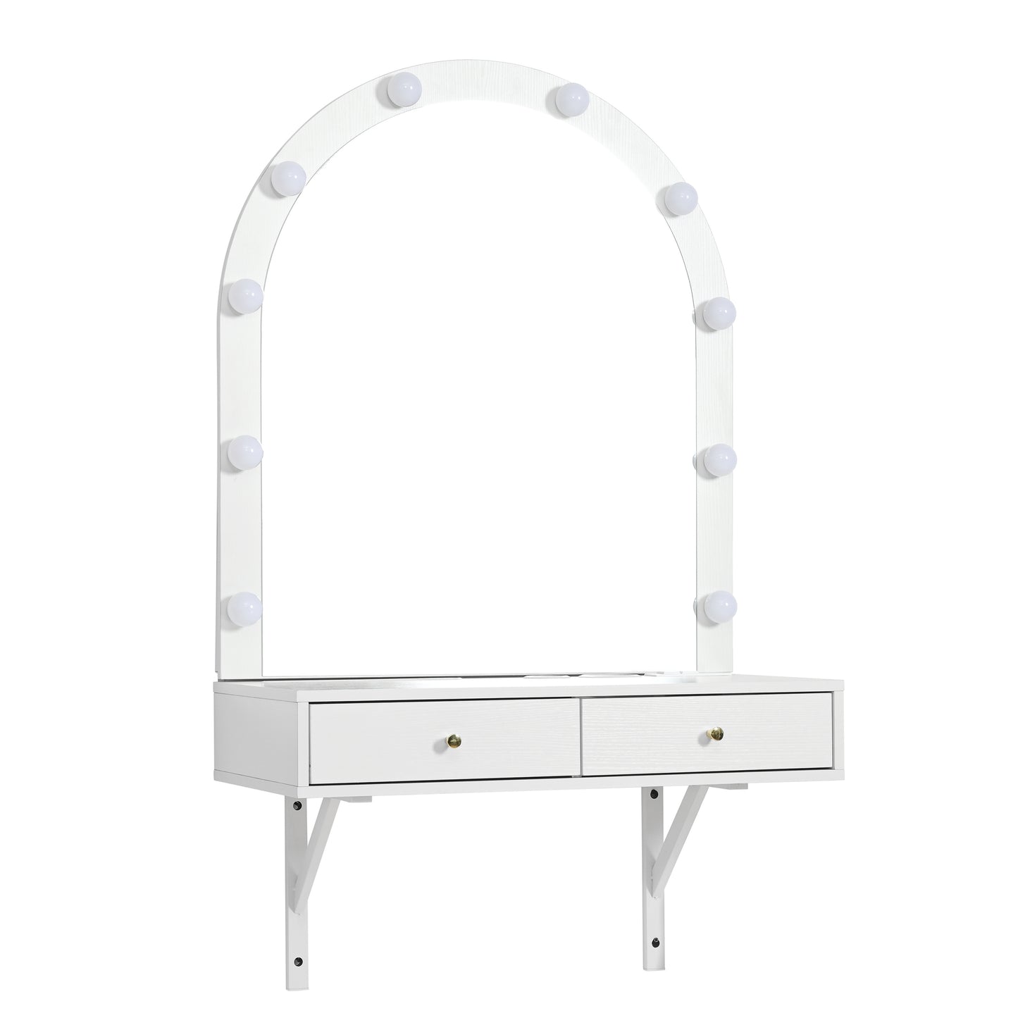 - 3-Color Adjustable HD Mirror: The vanity features an HD lighted mirror with 10 LED bulbs, adjustable to 3 brightness levels: warm, natural, and cool light. This 3-in-1 lighting option protects your eyes and enhances your makeup application in different scenarios.