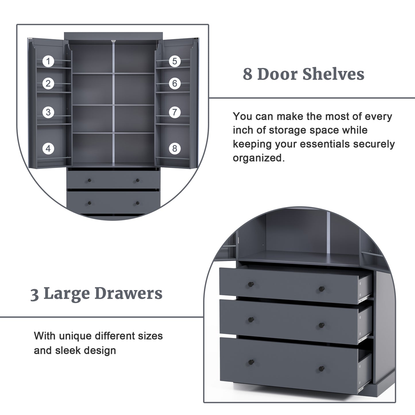 [Assembly Video Provided]TOPMAX 77inch Farmhouse Kitchen Pantry, Freestanding Tall Cupboard Storage Cabinet with 3 Adjustable Shelves, 8 Door Shelves, 3 Drawers for Kitchen, Dining Room, Gray