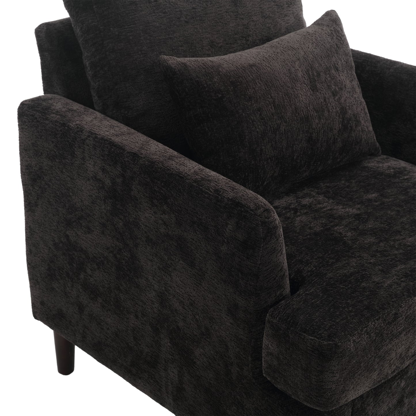 Modern Accent Chair Lounge Chair Black Chenille Tufted Club Chair Mid Century Arm Chair with Solid Wood Frame