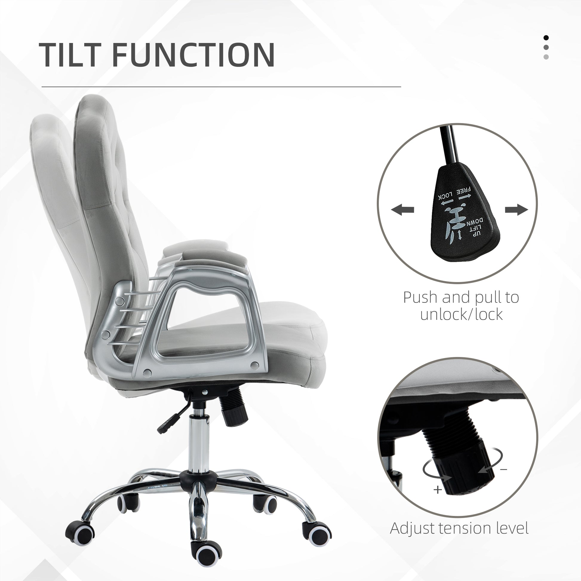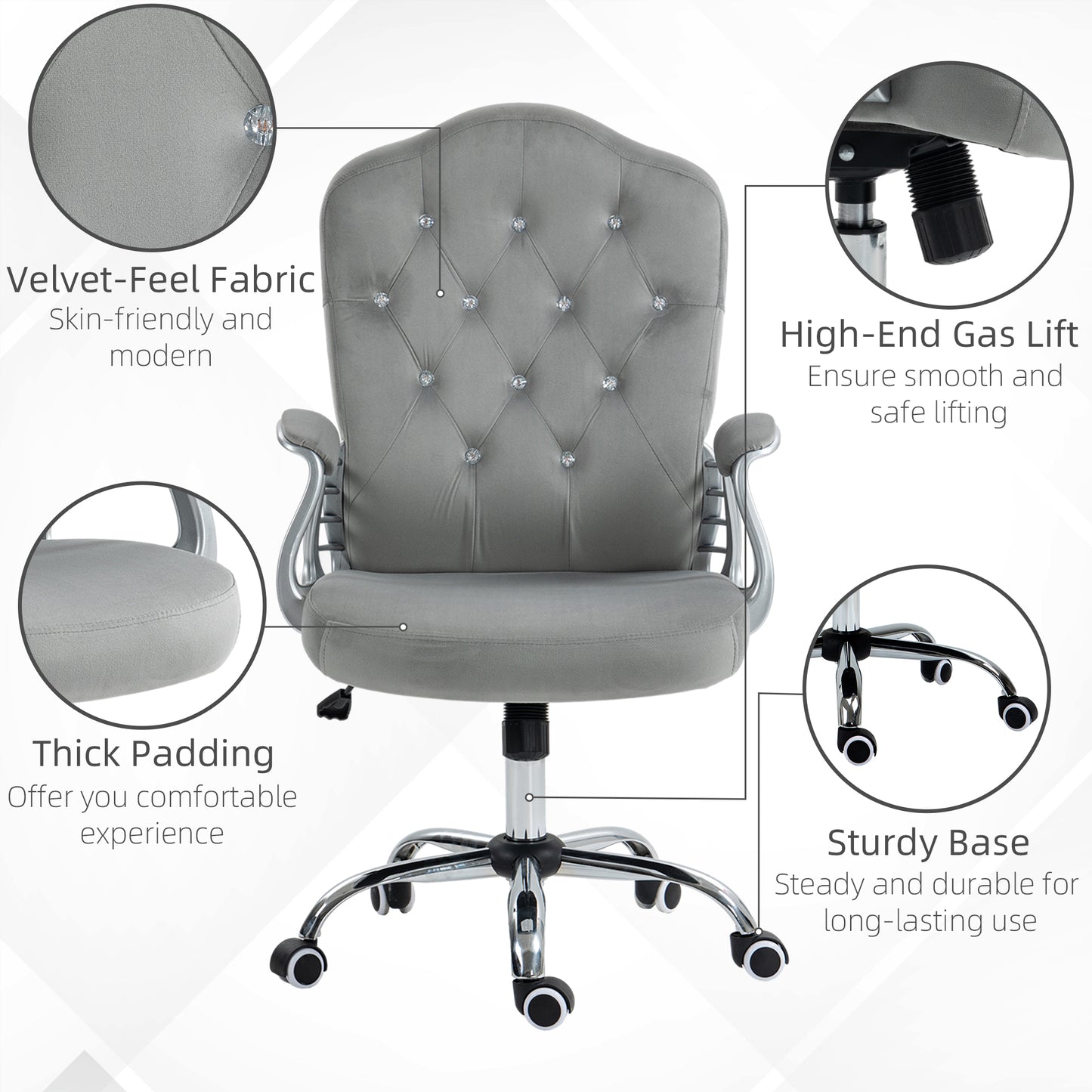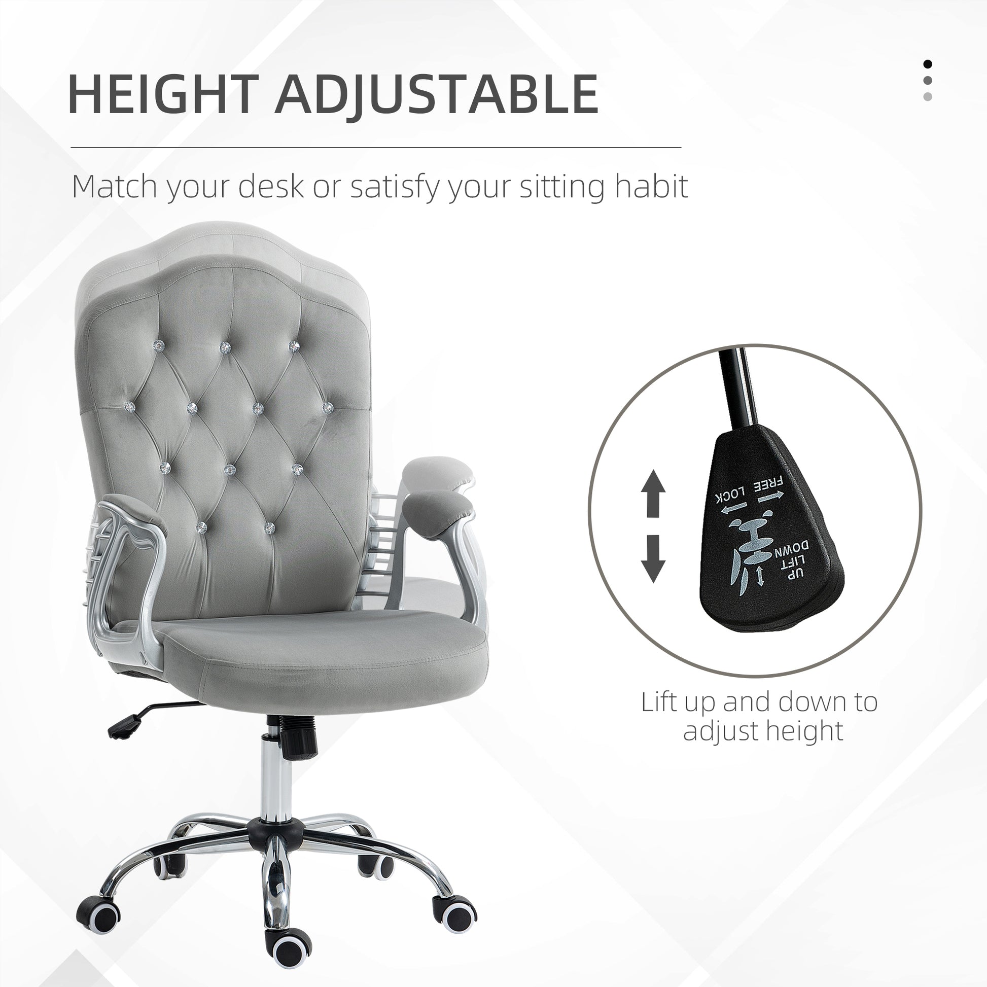 Vinsetto Home Office Chair, Velvet Computer Chair, Button Tufted Desk Chair with Swivel Wheels, Adjustable Height, and Tilt Function, Light Gray