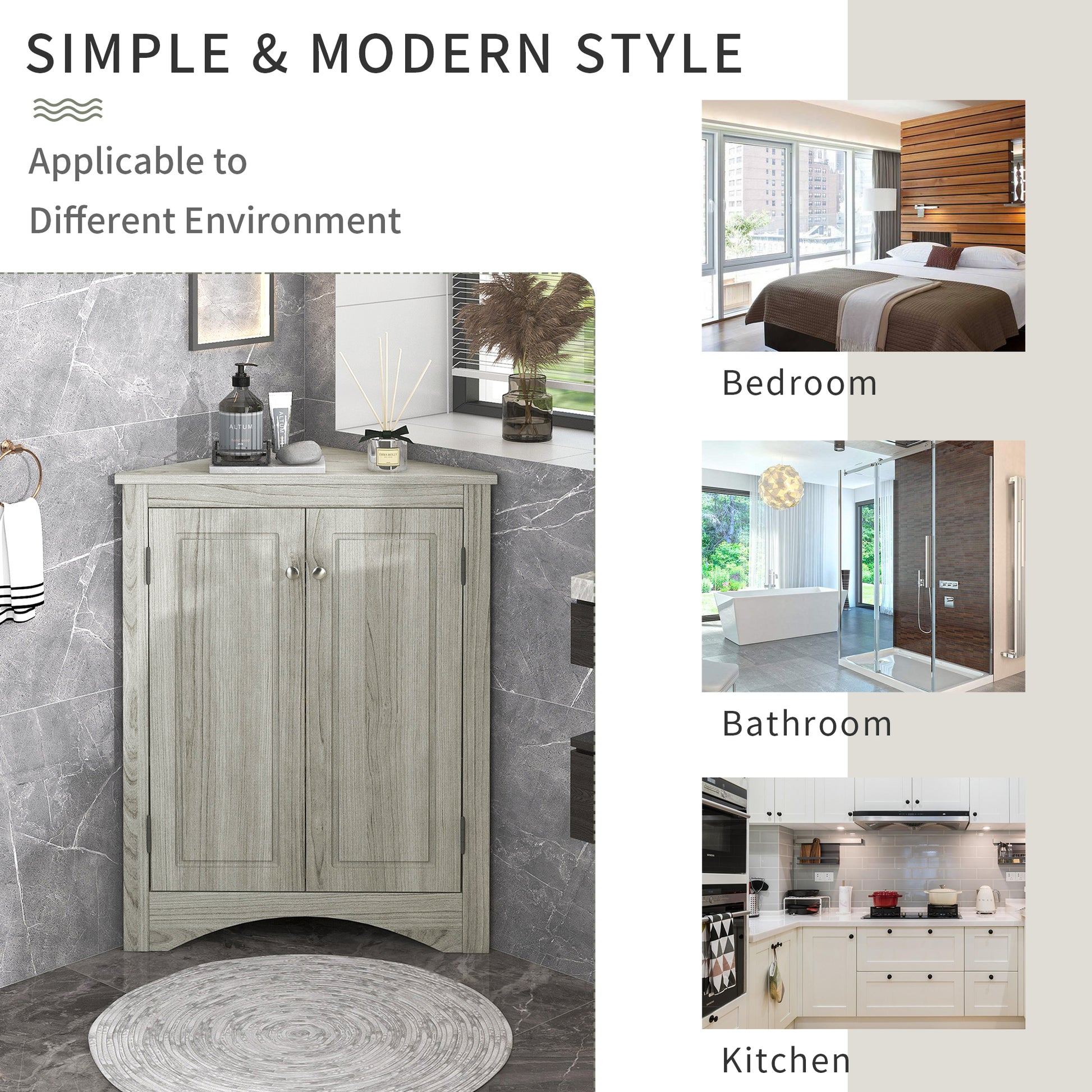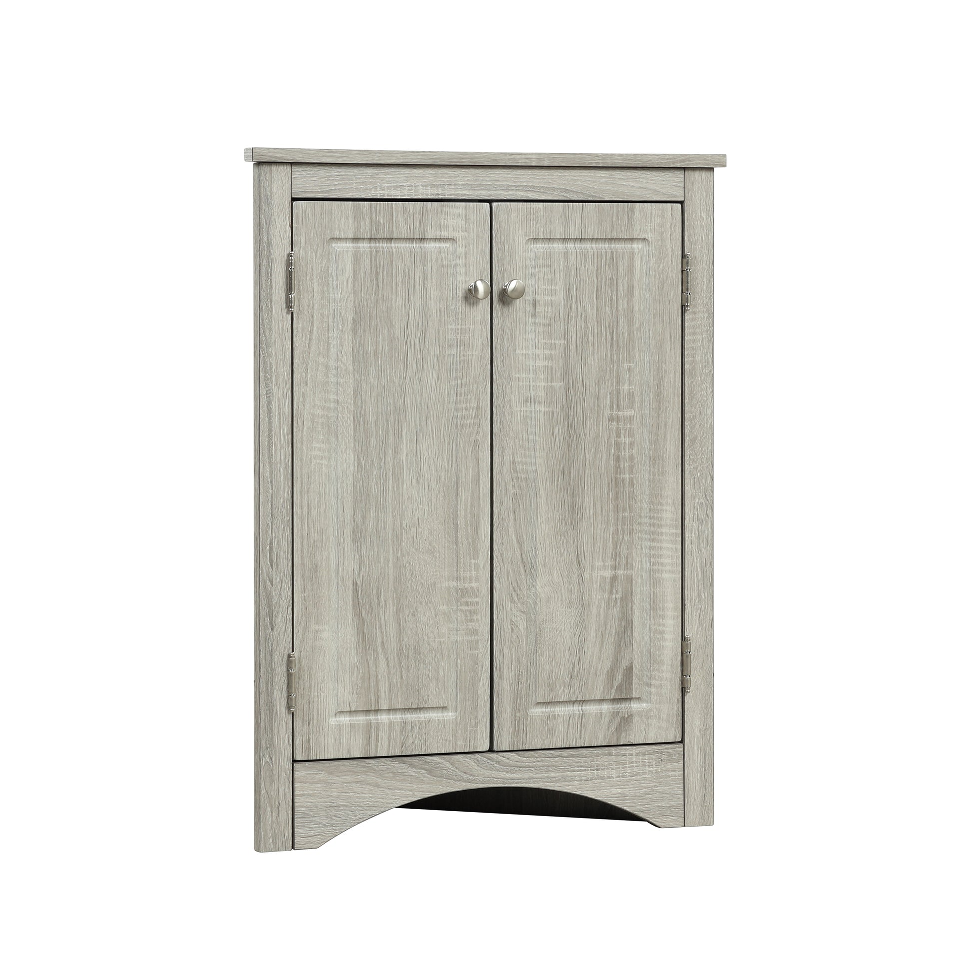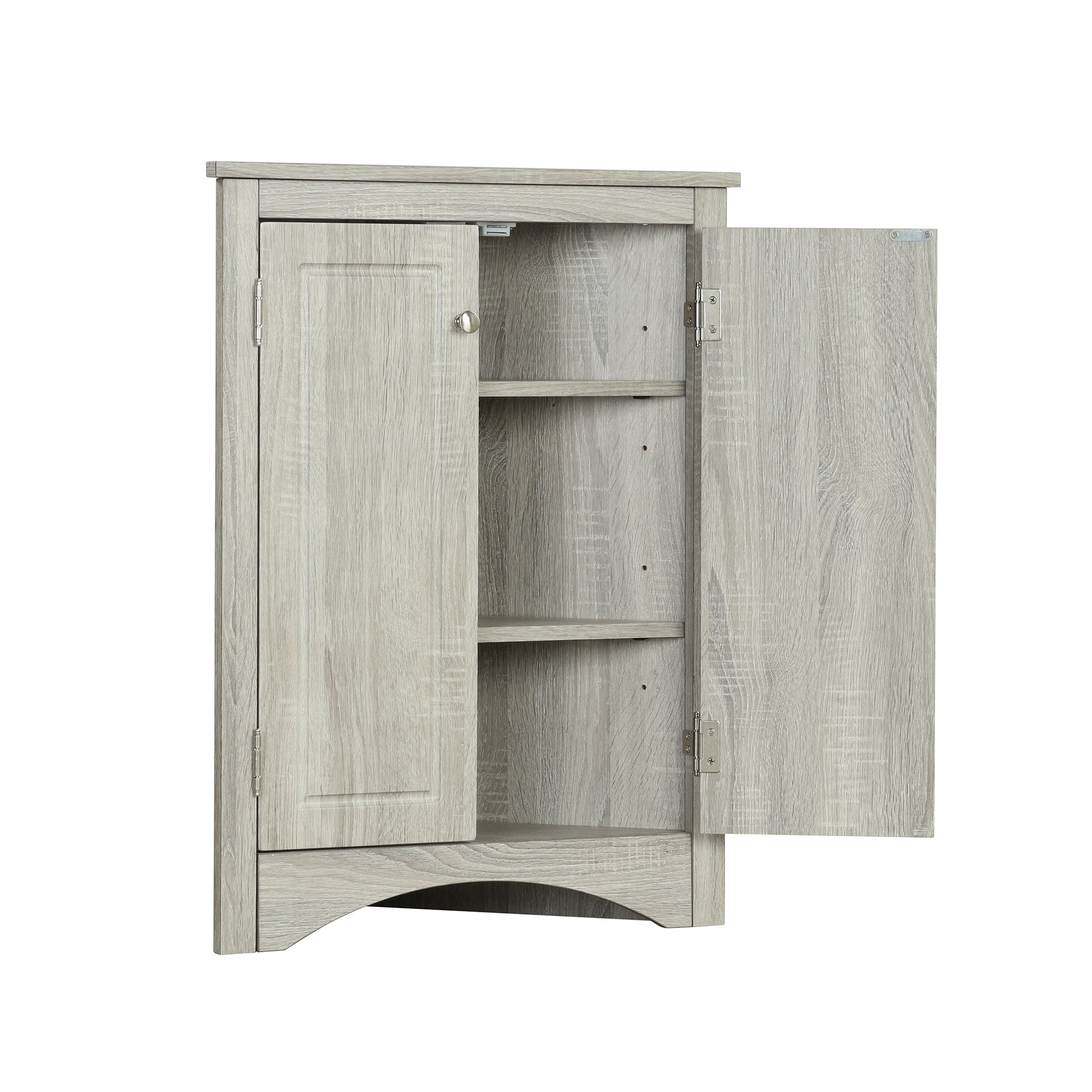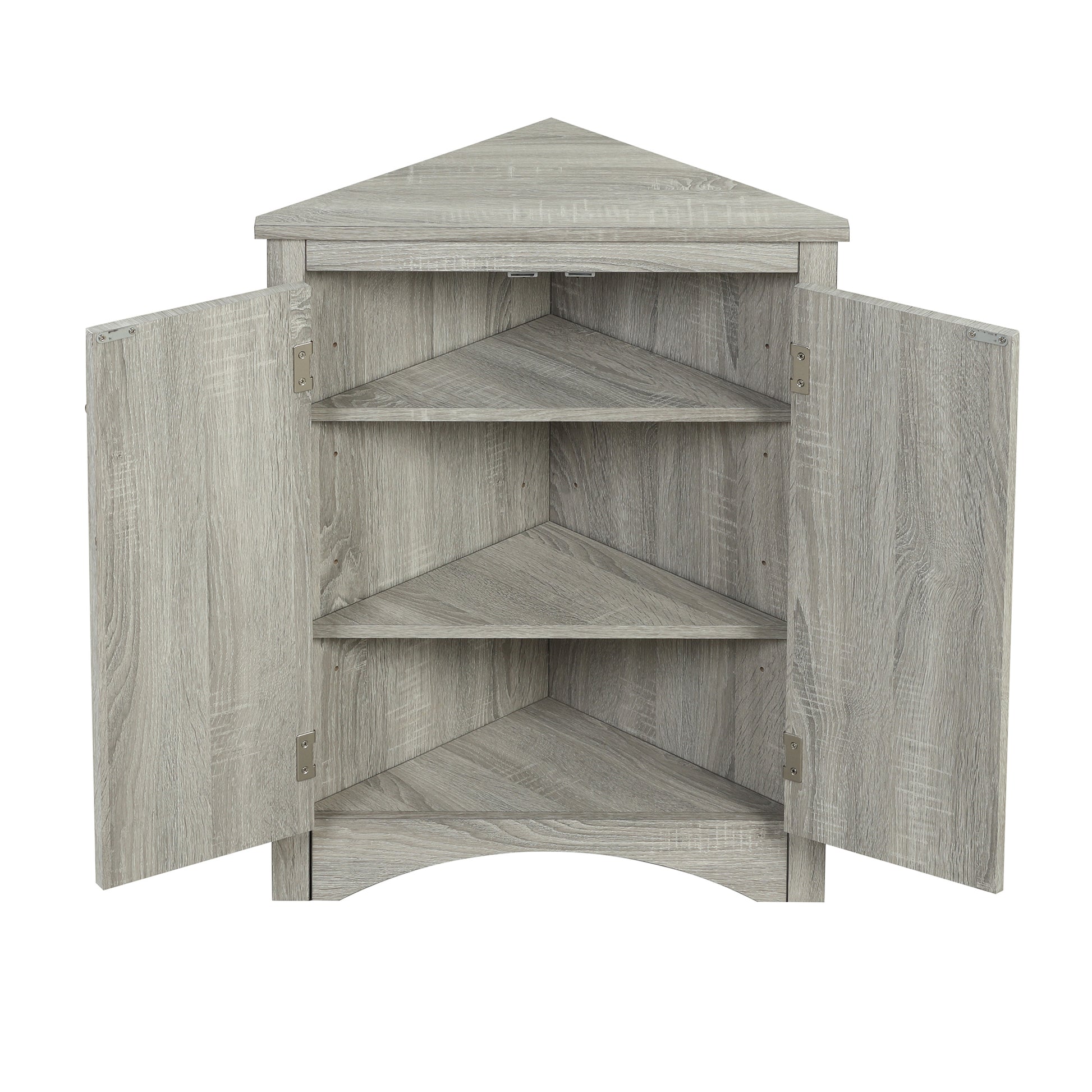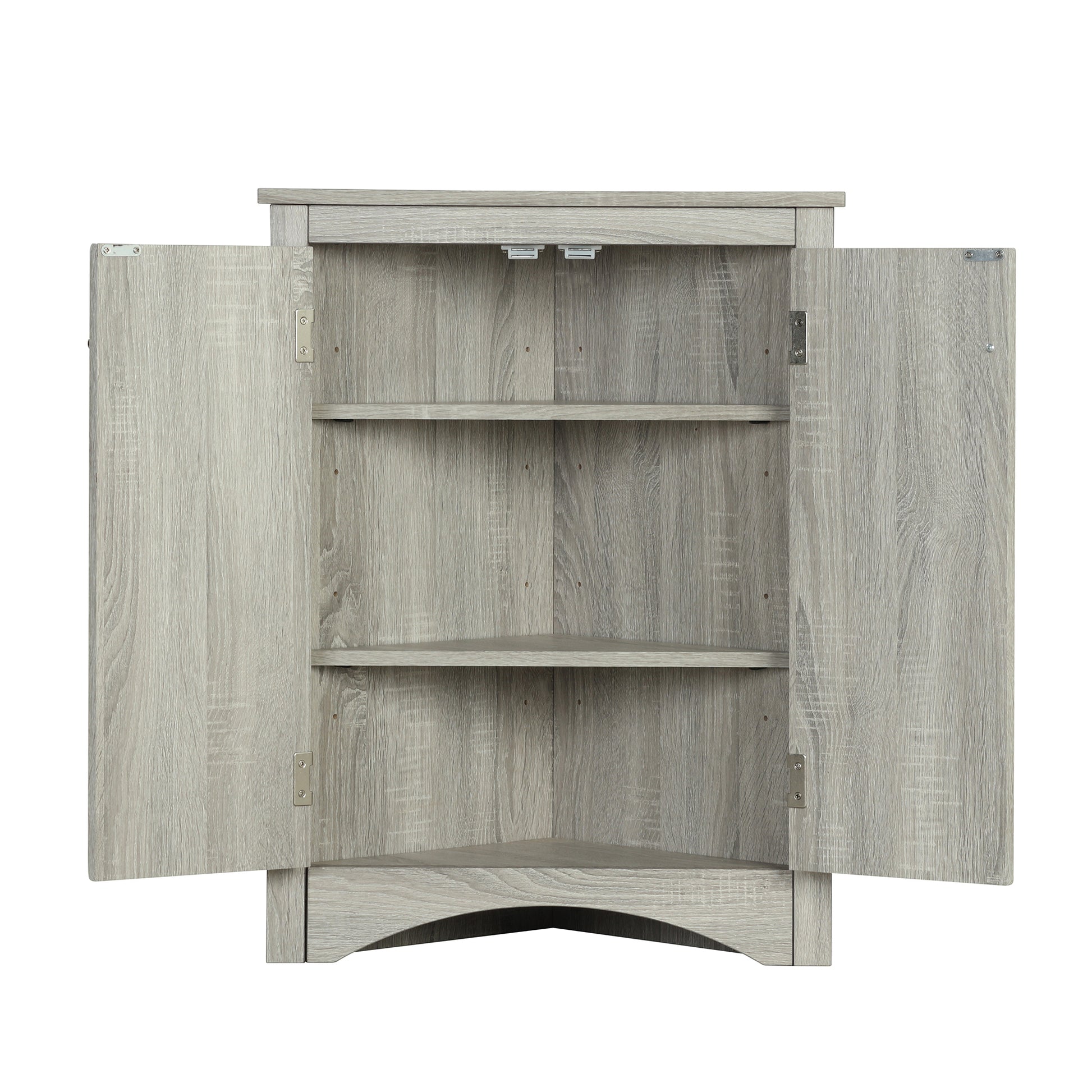 Oak Triangle Bathroom Storage Cabinet with Adjustable Shelves, Freestanding Floor Cabinet for Home Kitchen
