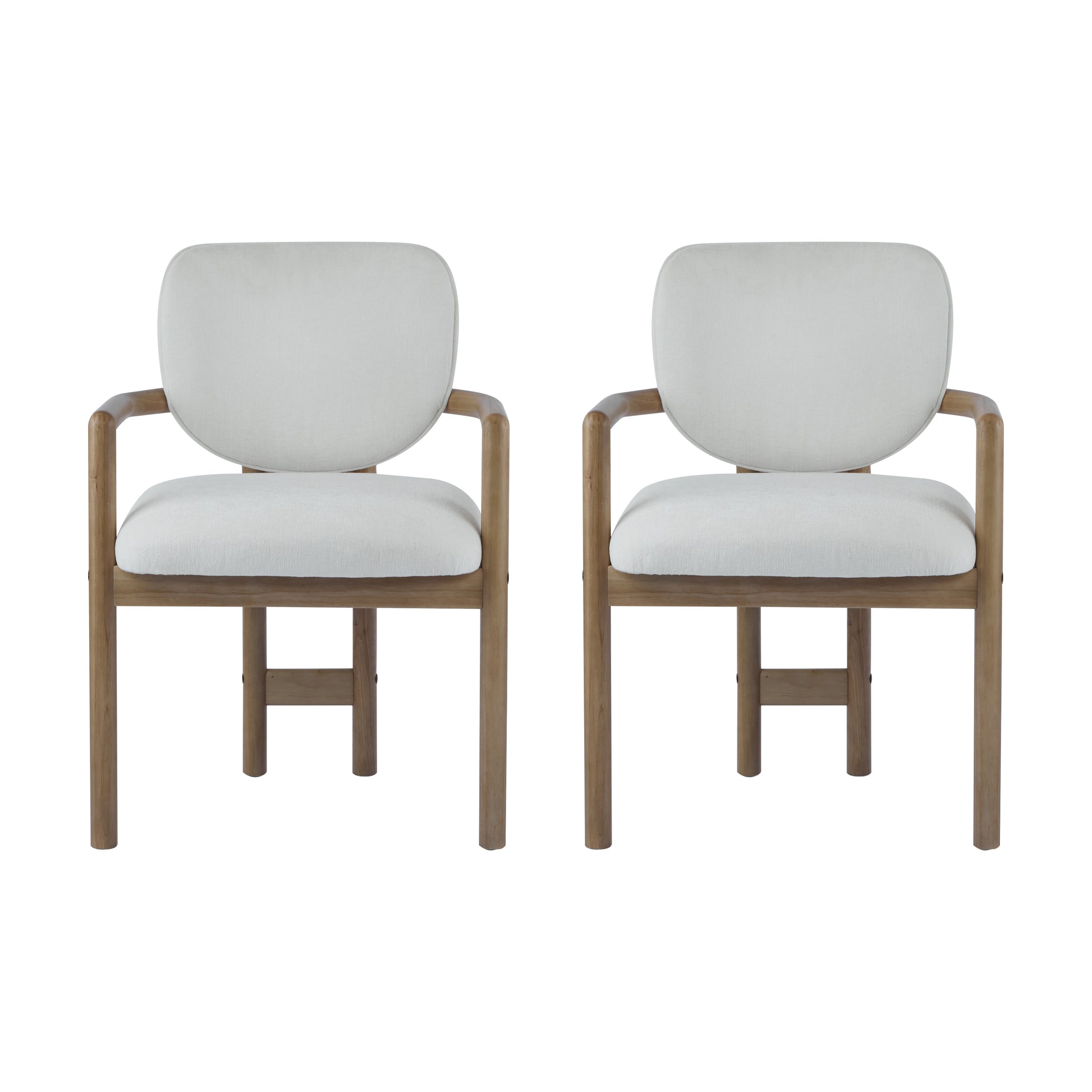 Dining Chairs Set of 2 Upholstered Arm Chairs, Rubber Wood Accent Chairs White Fabric Seating, 300 LBS Weight Capacity