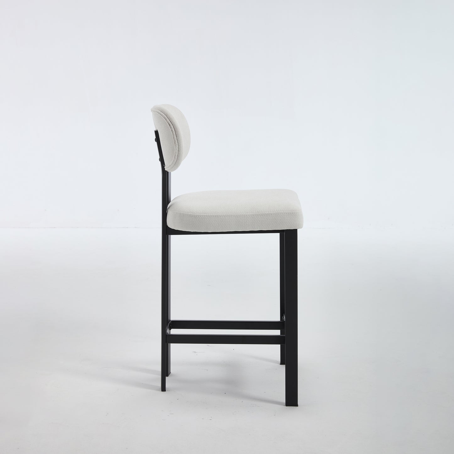 Bar Stools Set of 2, 26 inch Modern Upholstered Fabric Counter Height Barstools, Kitchen Island Chairs with Black Metal Legs for Dining Room/Kitchen Island/Bar
