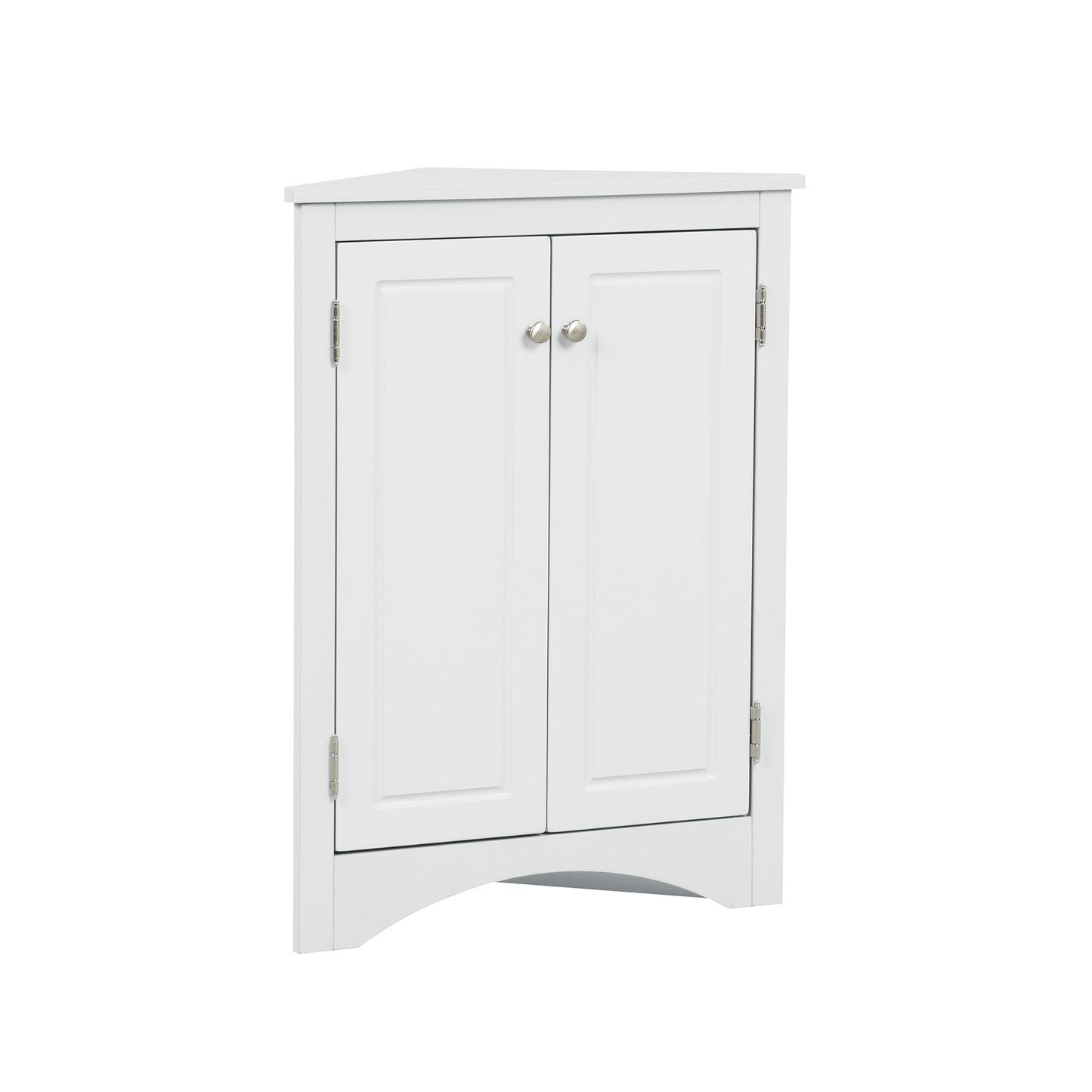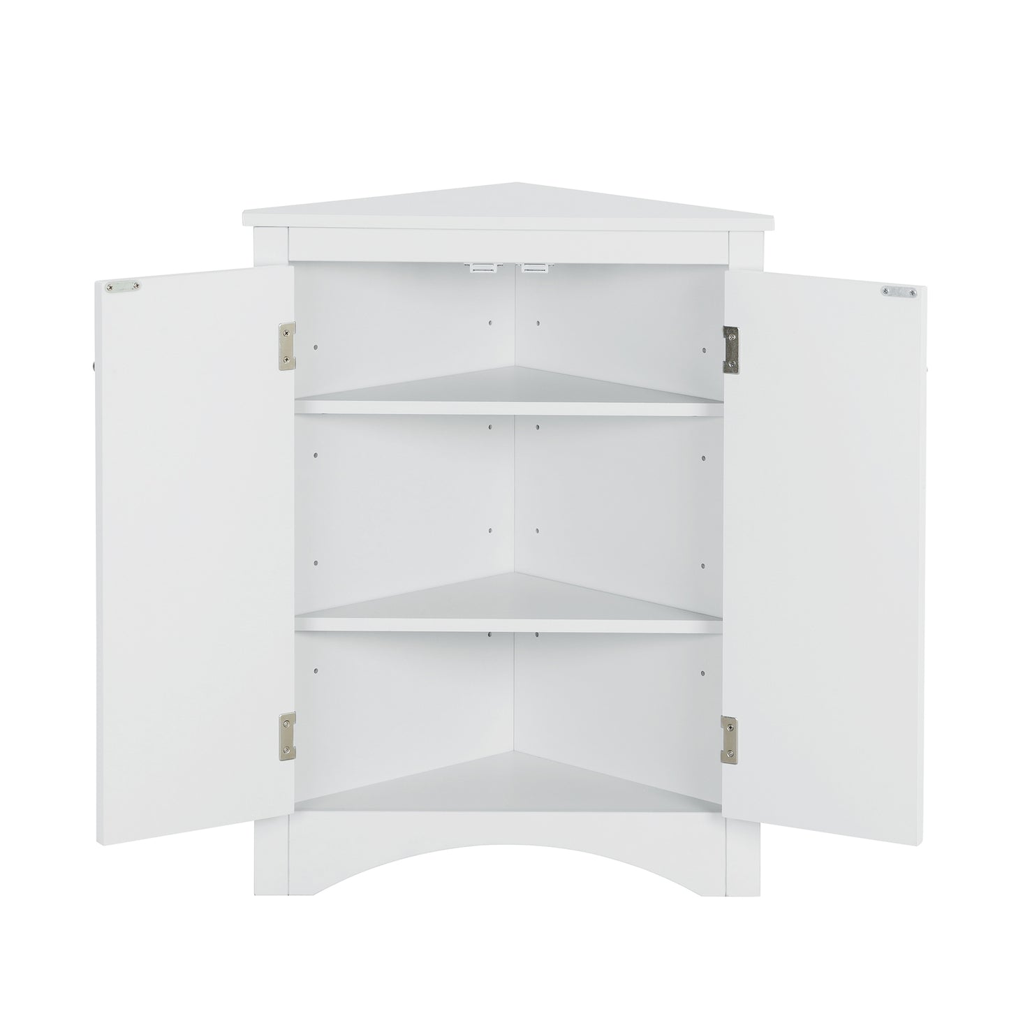White Triangle Bathroom Storage Cabinet with Adjustable Shelves, Freestanding Floor Cabinet for Home Kitchen