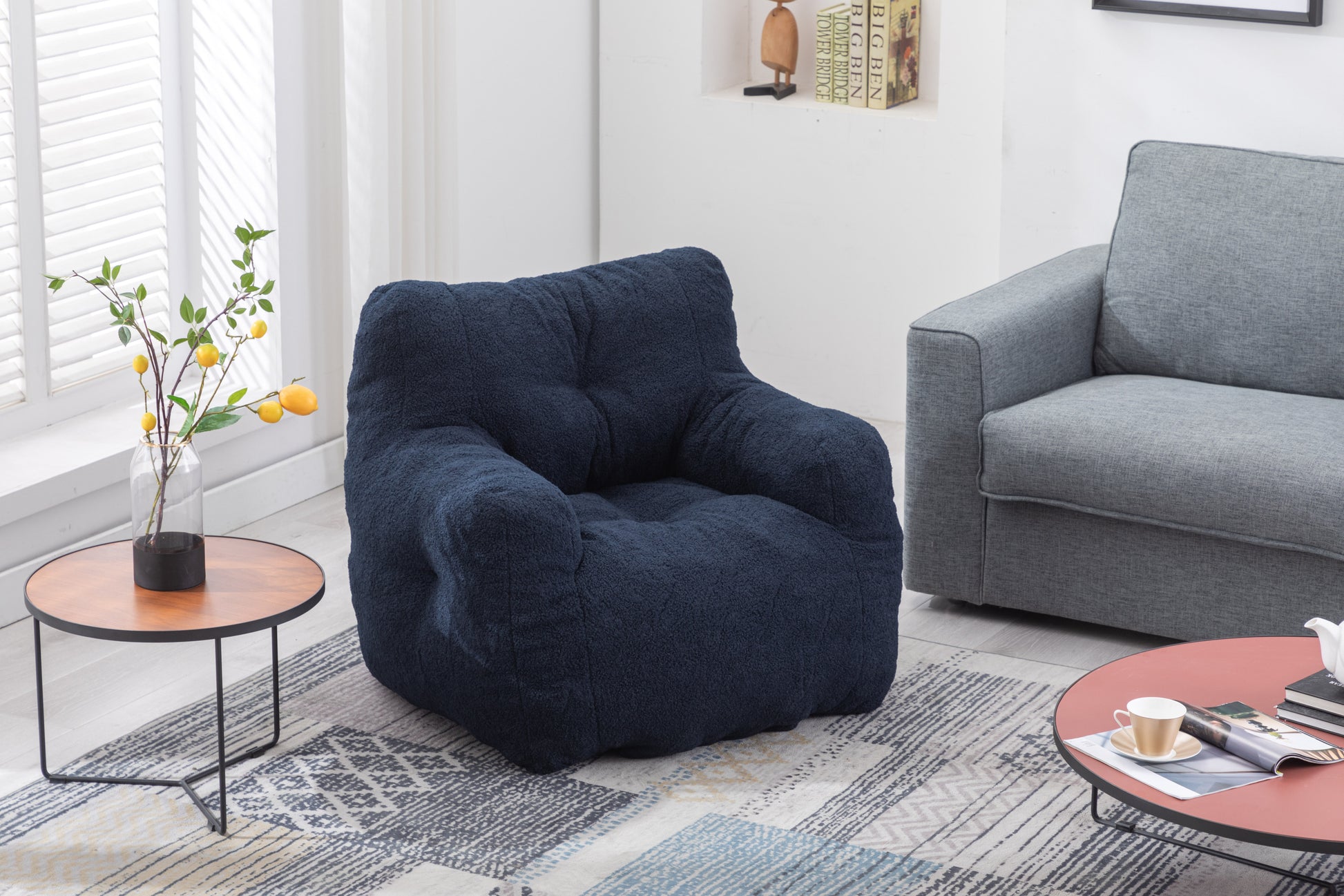 010-Soft Teddy Fabric Tufted Foam Bean Bag Chair With Teddy Fabric Dark Blue