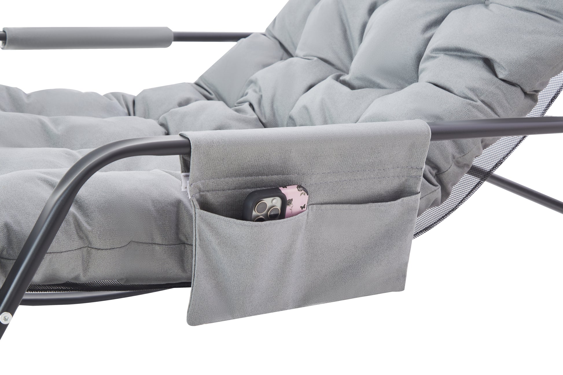 - DELUXE COMFORT:Our samba rocking lounge chair features a comfortably contoured seat design and a gentle gliding motion,providing a smooth rocking rhythm.The large seat and generous backrest perfectly contour the curves of your body,offering a cozy spot to rest and relax.Envision a leisurely rocking moment with your eyes closed.