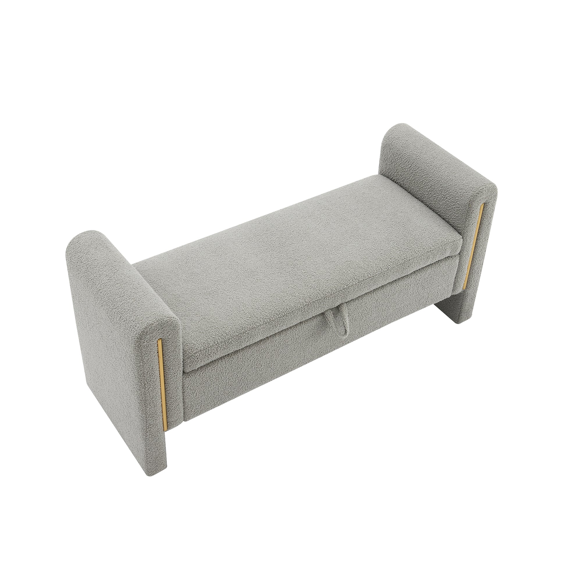 Modern Teddy Bed End Bench with Arms and Storage,Upholstered Large Foot Rest Stool, Comfy Window Vanity Bench for Living Room,Bedroom,Dorm,coffee Table,Teddy Grey