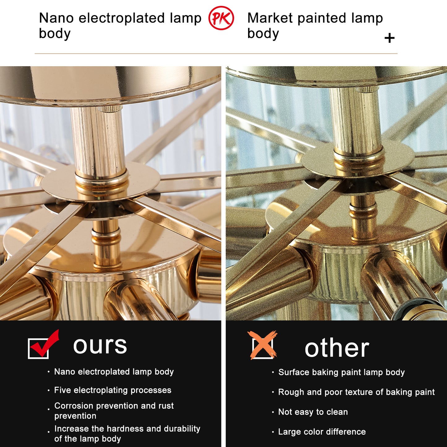 - Elegant and classic design -The crystal chandelier comes with a high-quality metal frame and K9 top-notch crystal.