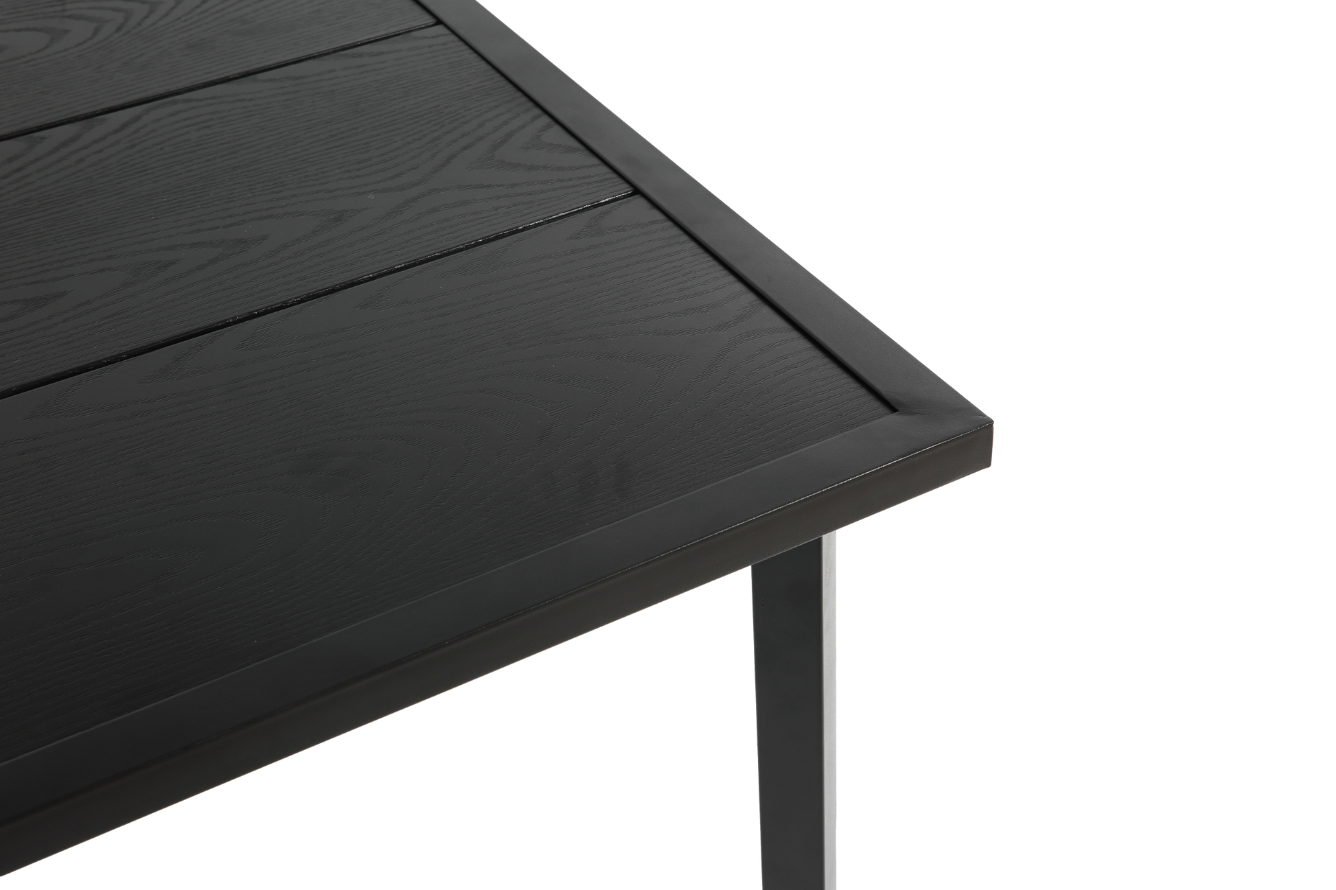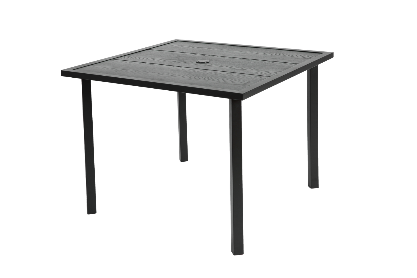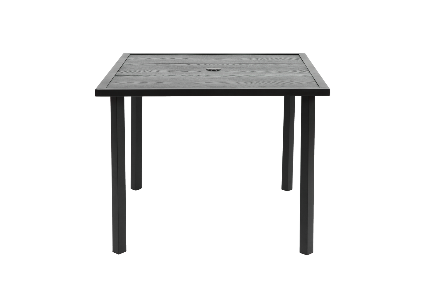 The steel table top makes the dining table more durable, dirt-resistant and easy to clean. The hole allows you to add a parasol for shade. And the legs of the table have adjustable legs to ensure the stability of the table.