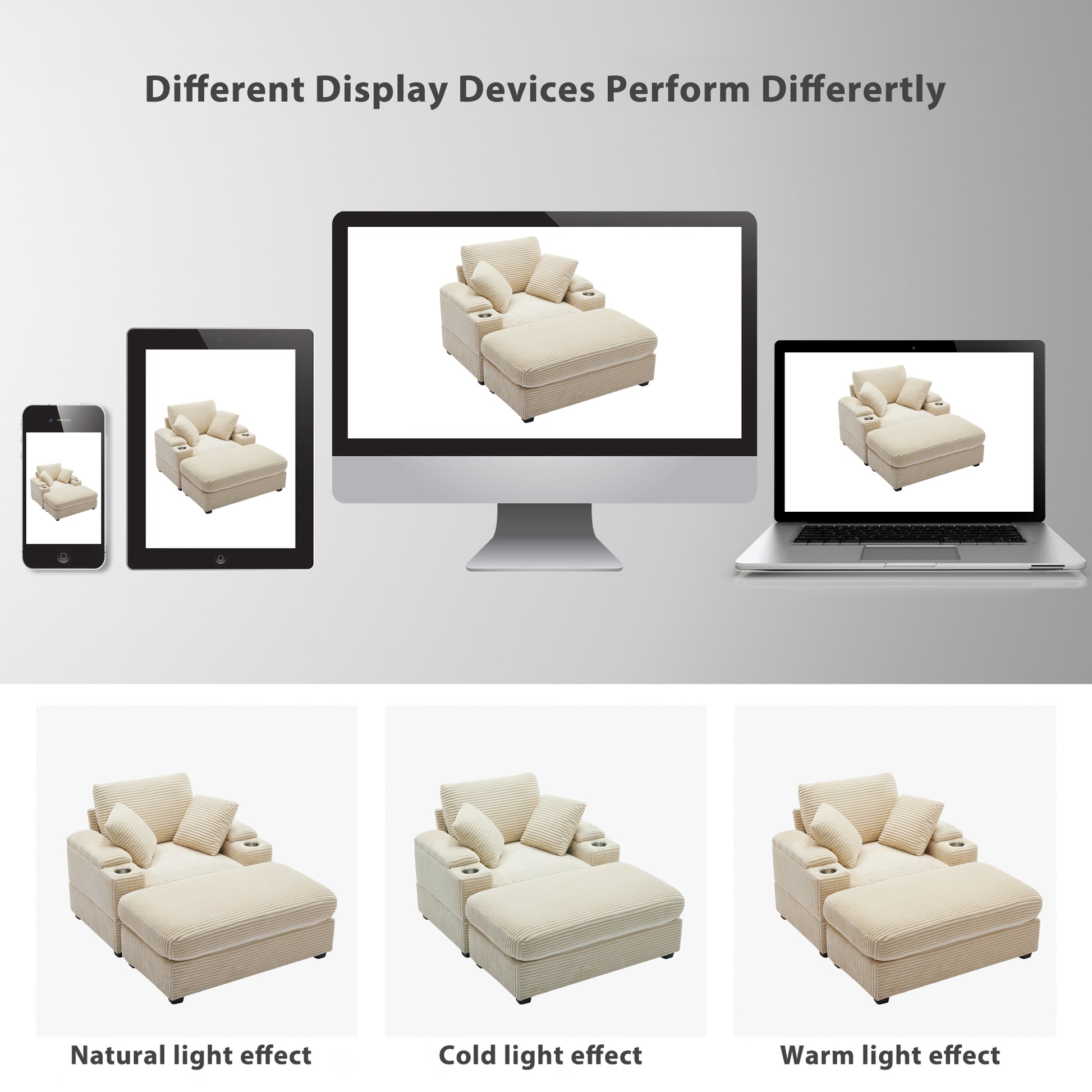[VIDEO/New]Corduroy Upholstered Chaise Lounge Sofa with Handrail storage ,Movable ottoman,Cupholders,Detachable Cushions Deep Seat for Living Room Office,3 colour
