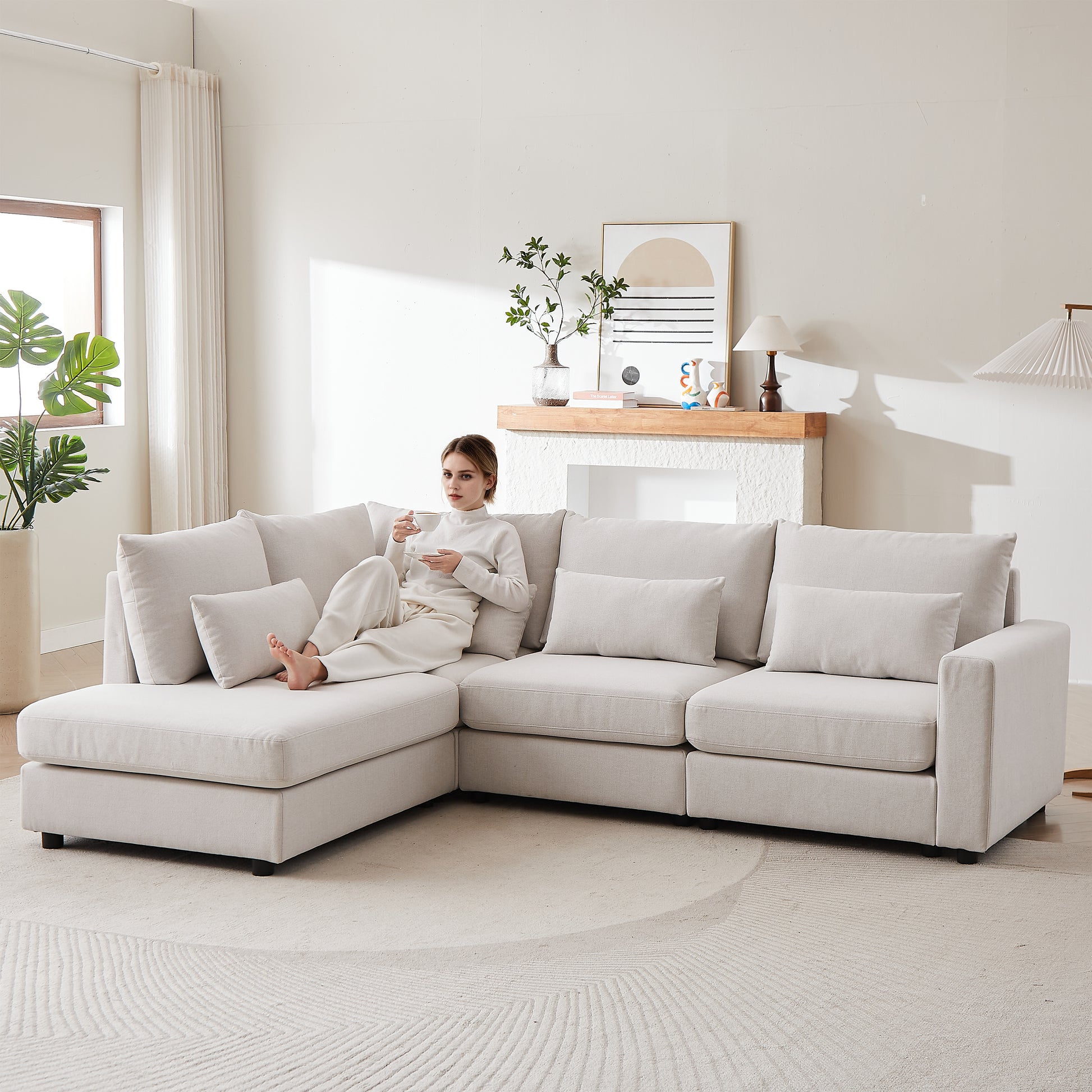 MH100.2' Sofa Convertible L-shaped linen sofa with ottoman Plastic legs with 5 cushions 4 lumbar pillows Comfortable combination sofa for living room apartment office,beige
