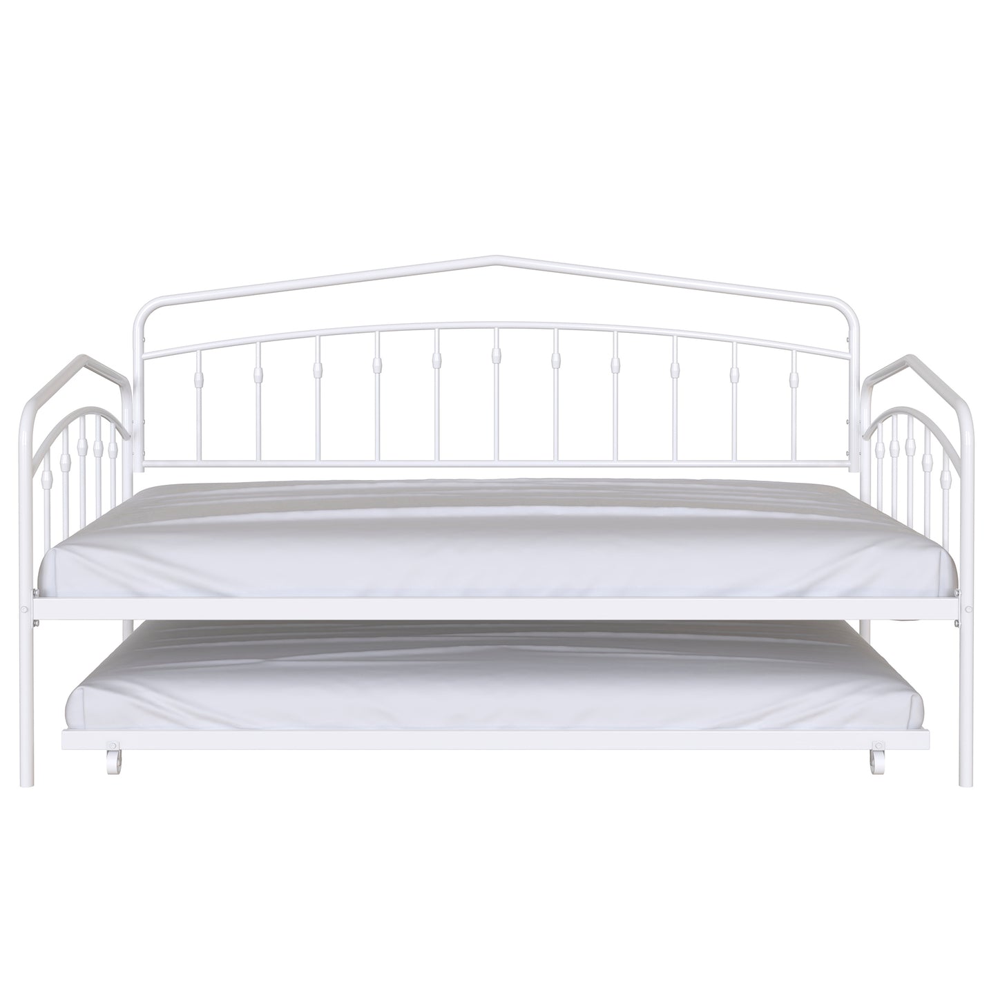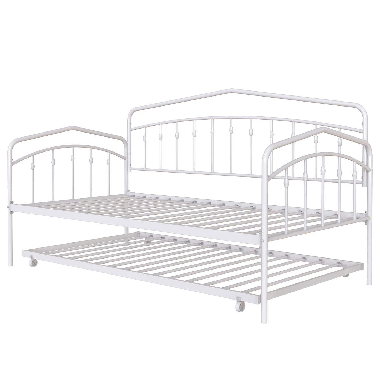 - [Durable Metal Frame]: Both the daybed and trundle feature secured metal slats for support and durability. Includes a trundle with four easy-glide casters (2 locking, 2 non-locking) that easily rolls in and out when you need an extra sleeping space.