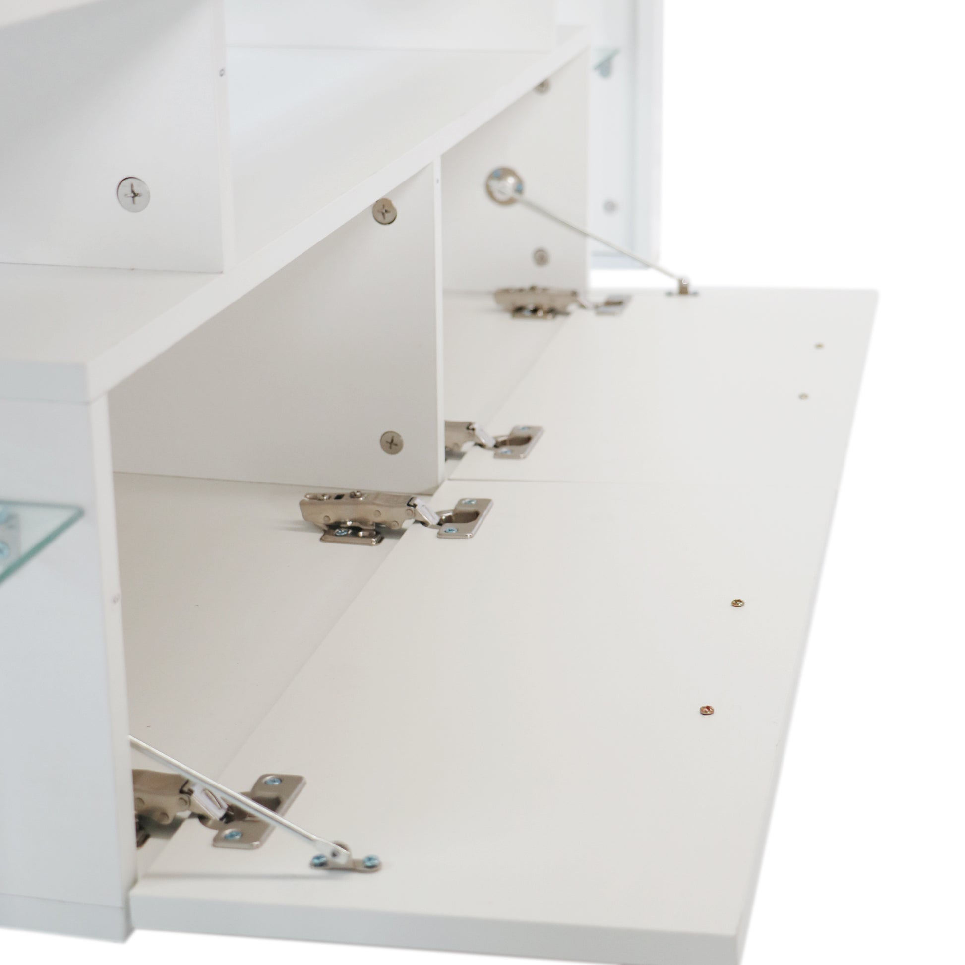 FashionTVstandTVcabinet,EntertainmentCenter,TVstationTV console,media console,with LEDlight belt,light belt remote control,toughenedglassshelf,metal handle,Canbeplaced in the living room,bedroom,White