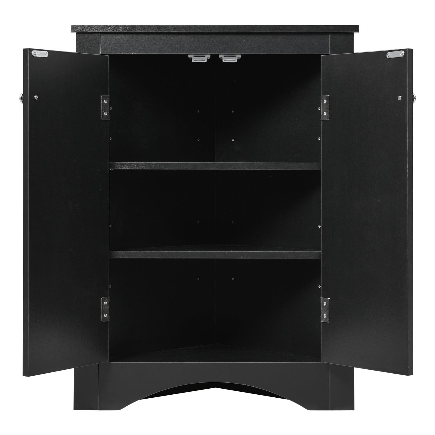 Black Triangle Bathroom Storage Cabinet with Adjustable Shelves, Freestanding Floor Cabinet for Home Kitchen