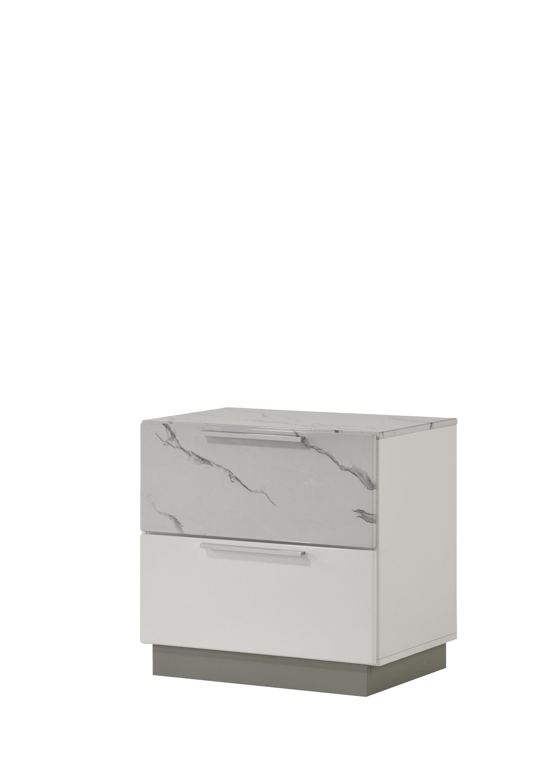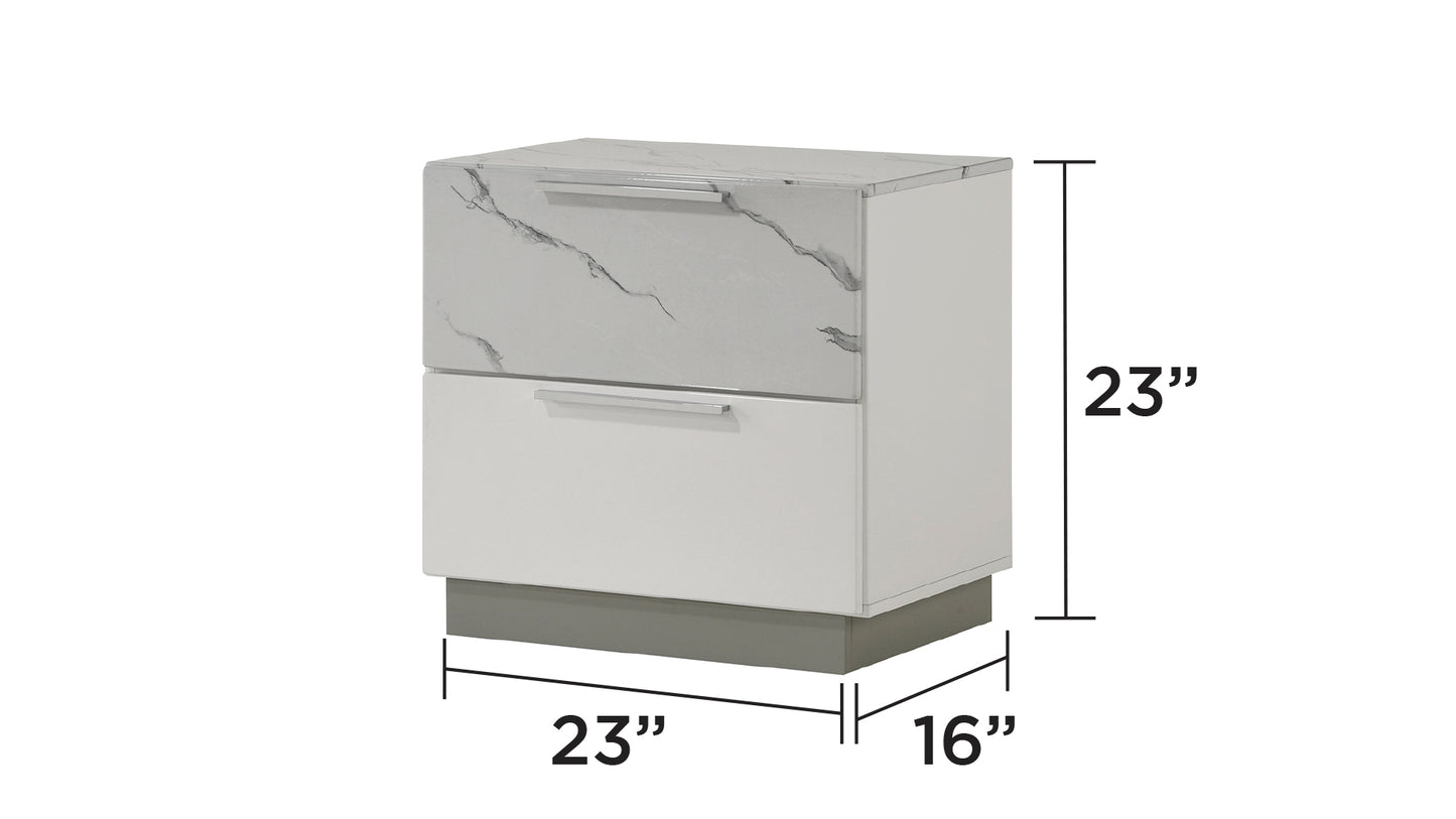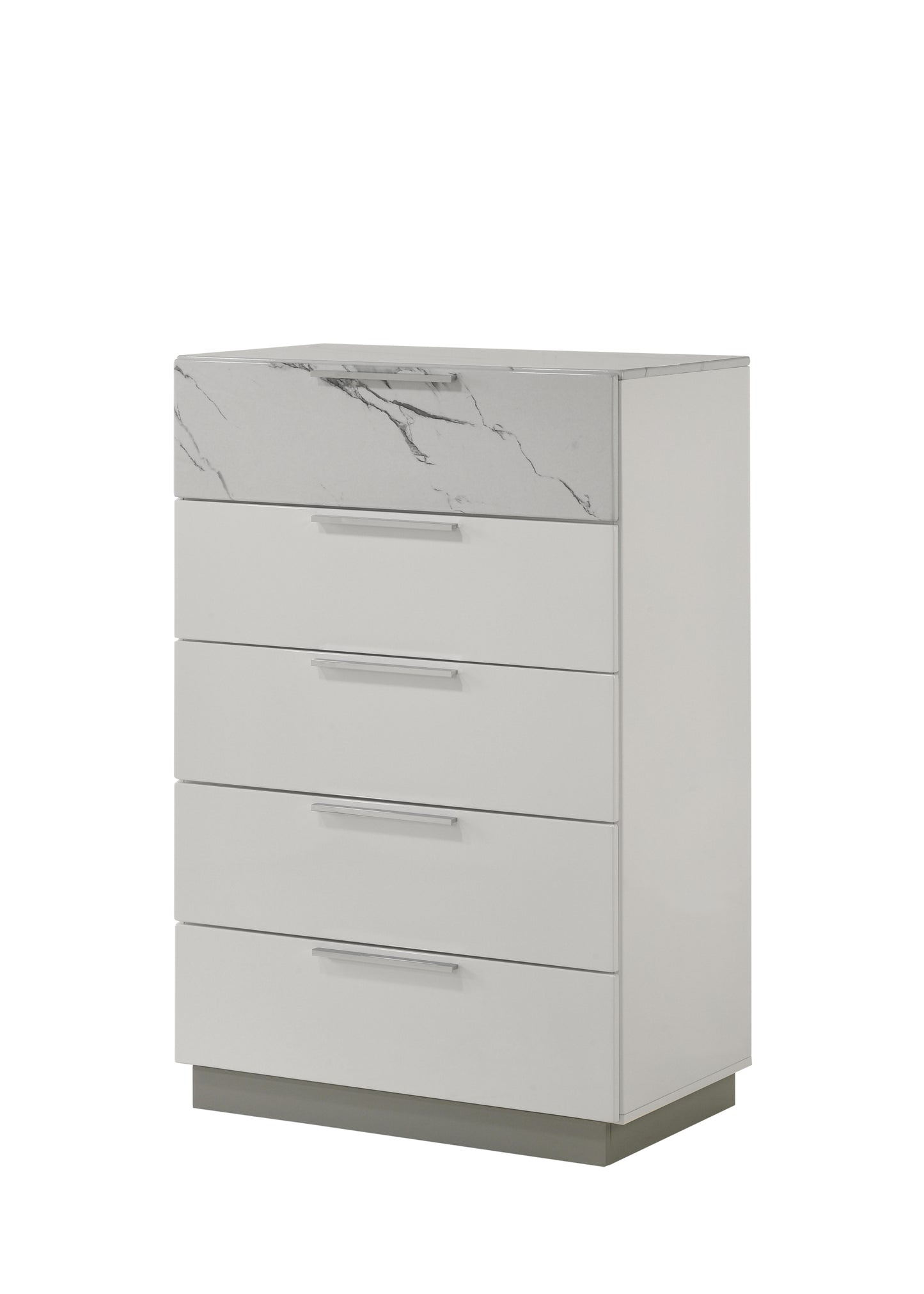 - Two-Tone High-Gloss Marble and Lacquer Finish: The luxurious marble-patterned surfaces on the bed, dresser, nightstand, and chest elevate the overall aesthetic.
