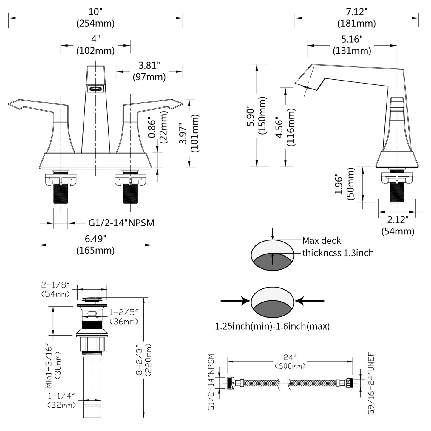 Included Components Press Type Pop-up Drainx1, 60CM Supply Hosex2, User Manualx1, Built-In Water Filterx1