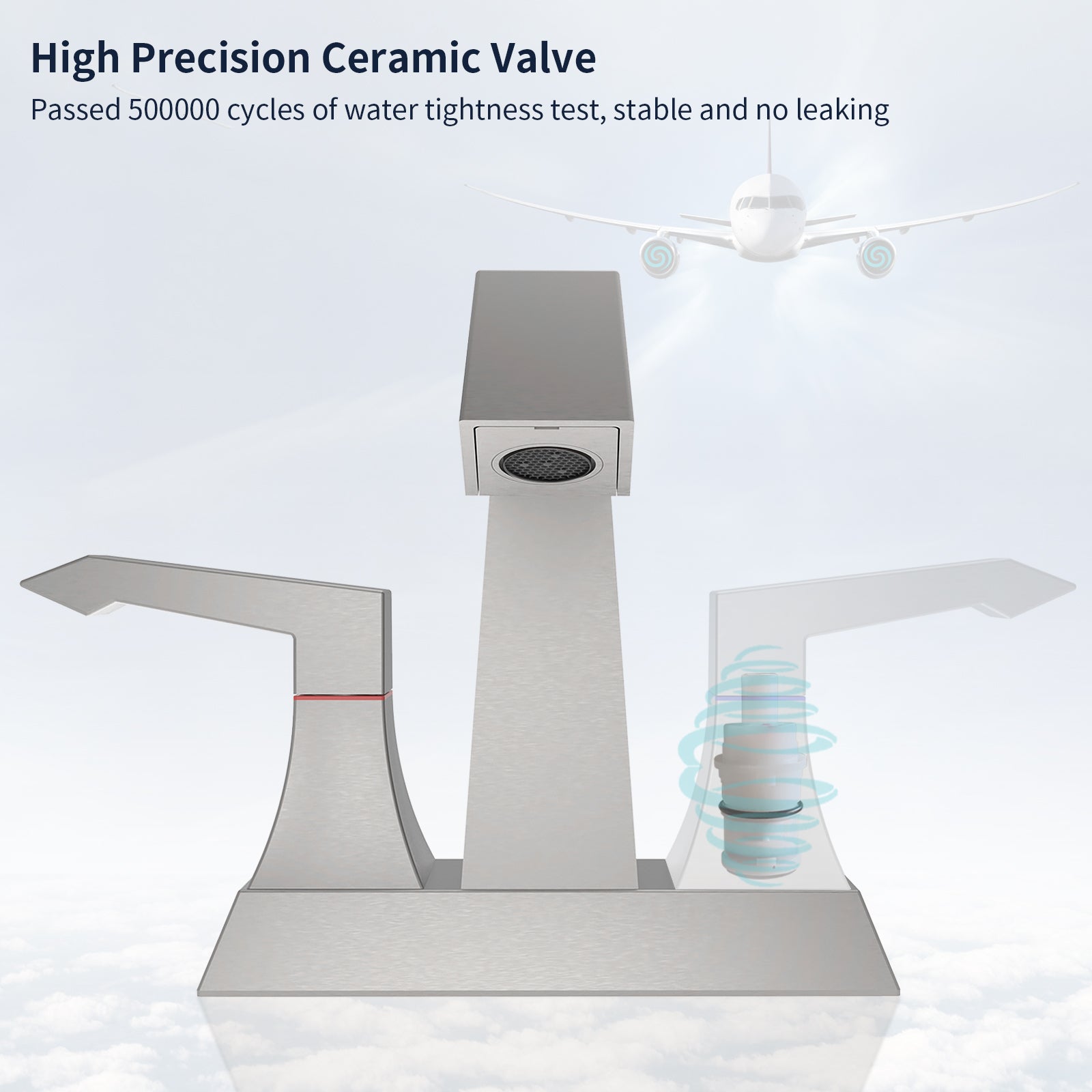 - Ceramic valve --- The ceramic valve core of this bathroom sink faucet Brushed nickel has undergone many cycles of testing and is more durable than other bathroom sink faucets on the market.