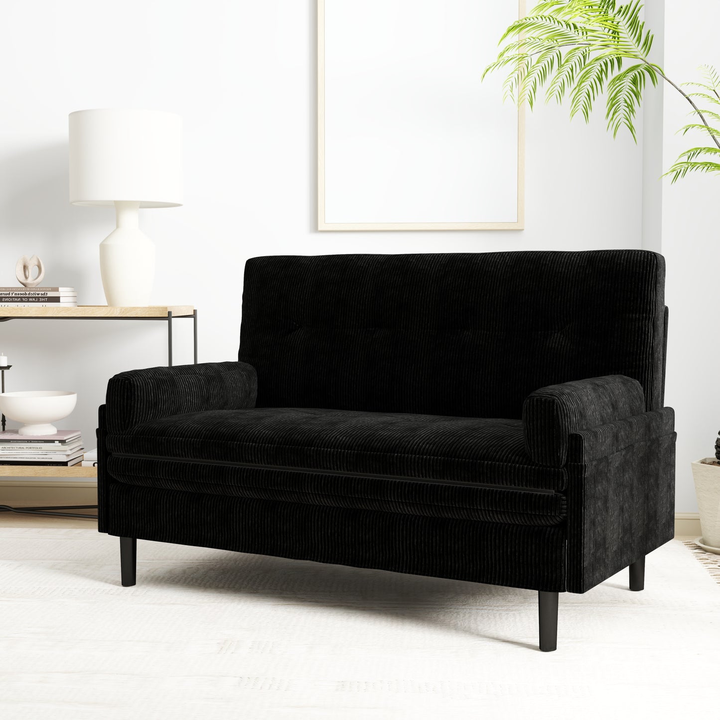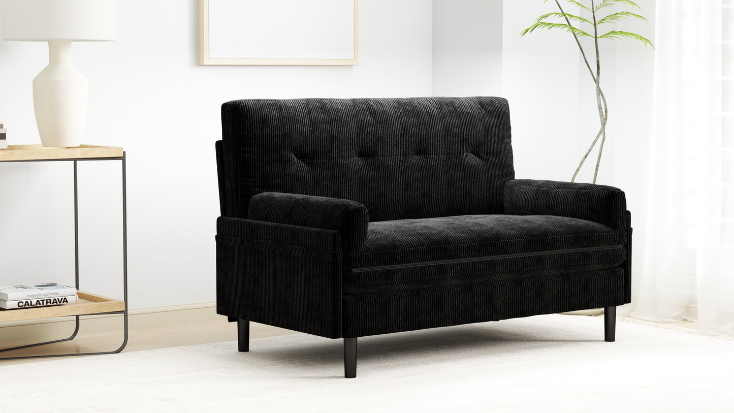 - The frame of the sofa is made from metal to ensure durability, while the cushions are filled with foam to provide a balance of comfort and support. The upholstery using velvet to offering aesthetics to fit the decor of any living space.