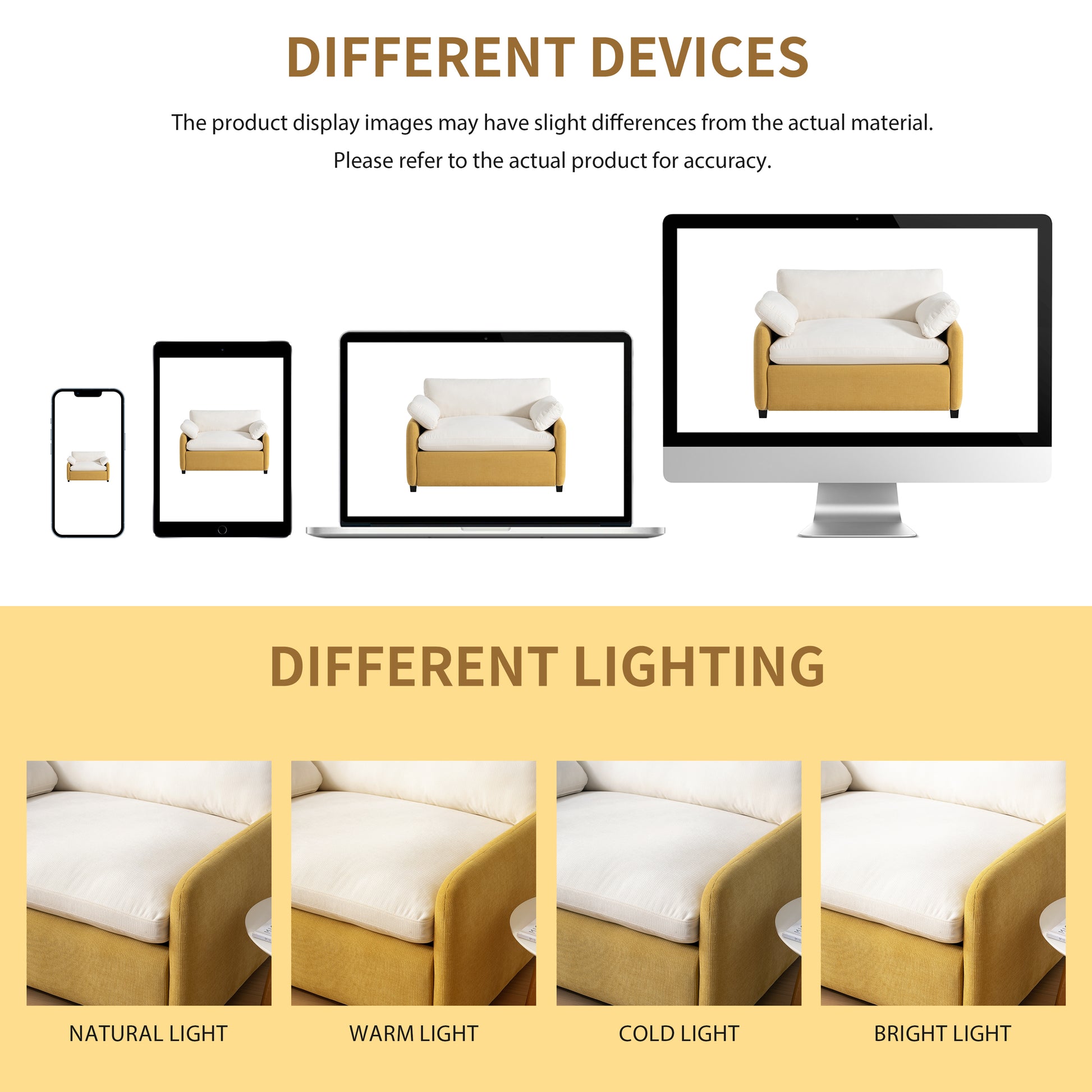 Modern Oversized Chenille Armchair with Color Blocking and Pillows, 50*43' in Cream and Yellow