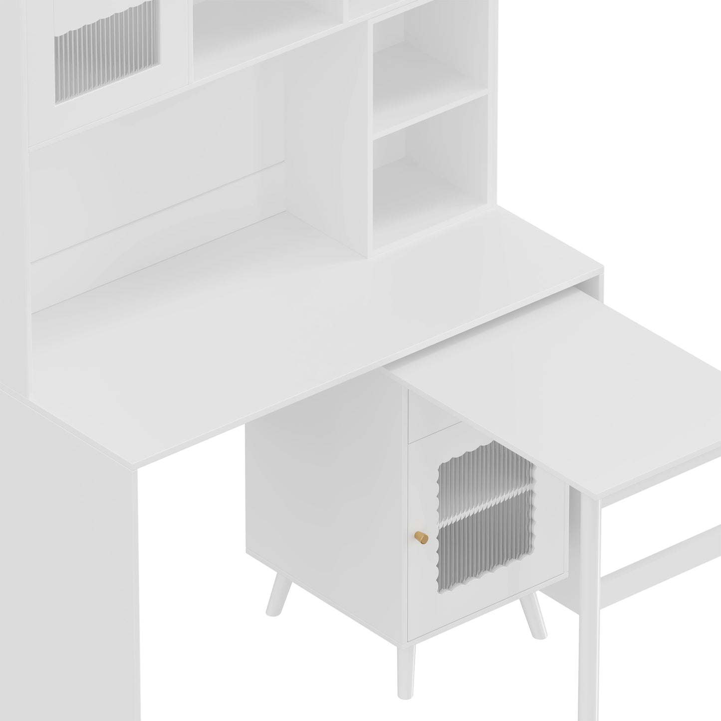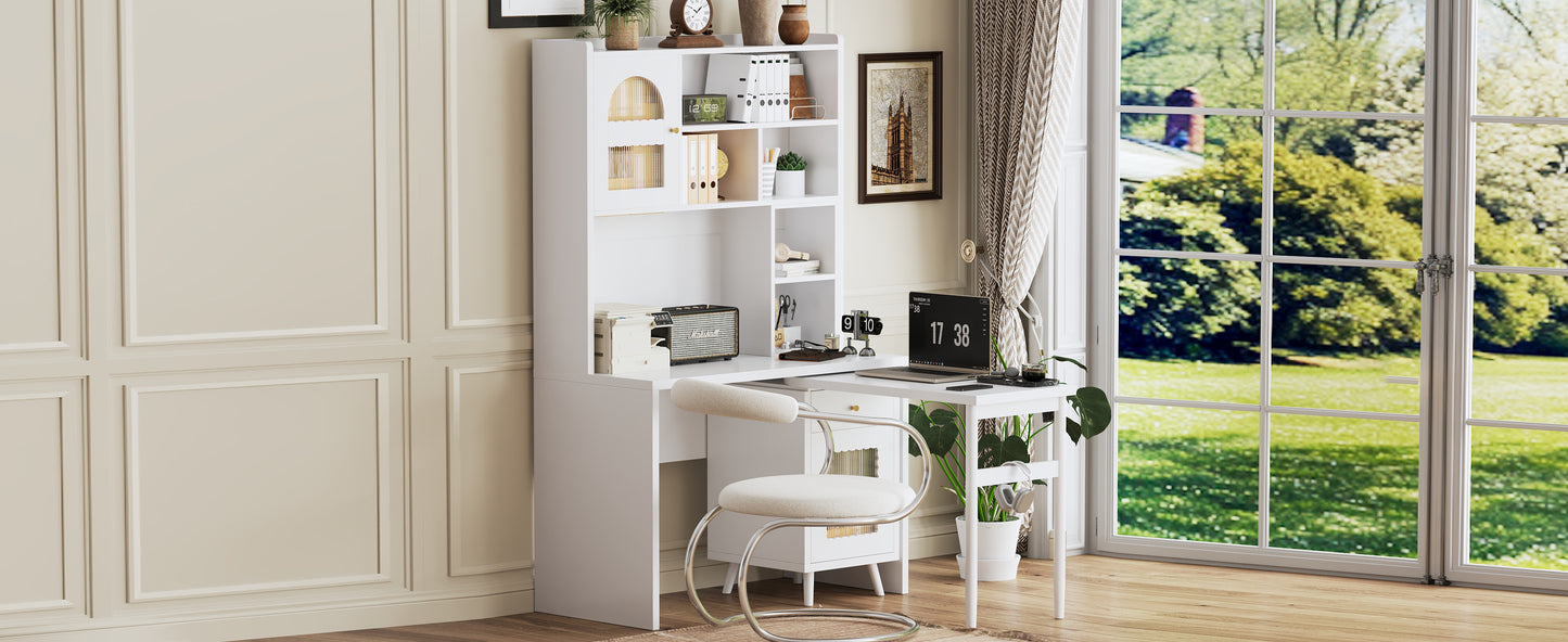In addition to its smart design, this desk comes with ample storage options, including 2 cabinets, 1 smooth-gliding drawer, and multiple open shelves to keep your essentials organized and within easy reach.