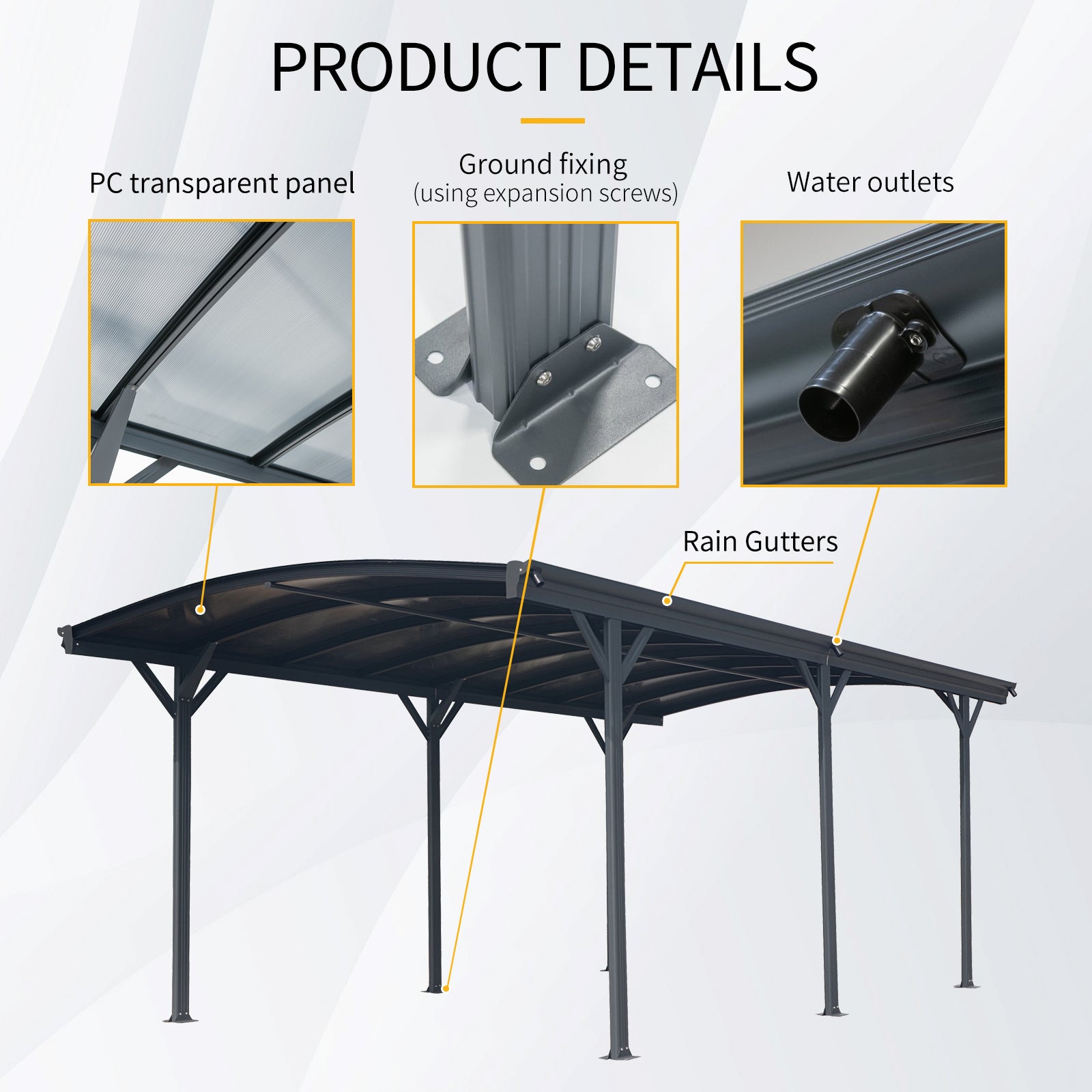 Outdoor Carport, 10 FT * 19 FT* 7 FT Arch Carport Aluminum Metal Frame and Polycarbonate Panels Car Port for Outdoor Driveway Car, Truck