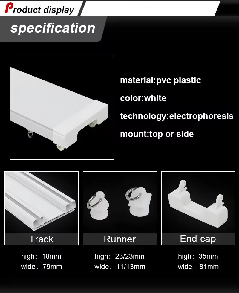 | Track Bracket | IRON material | Runner/Cover | Plastic material |