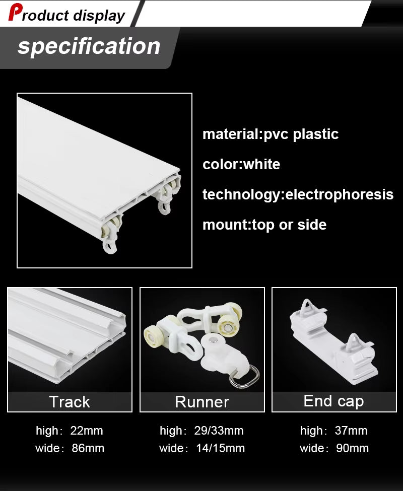 | Curtain accessories | Plastic runner / end cap / bracket | length | 1.2m |
